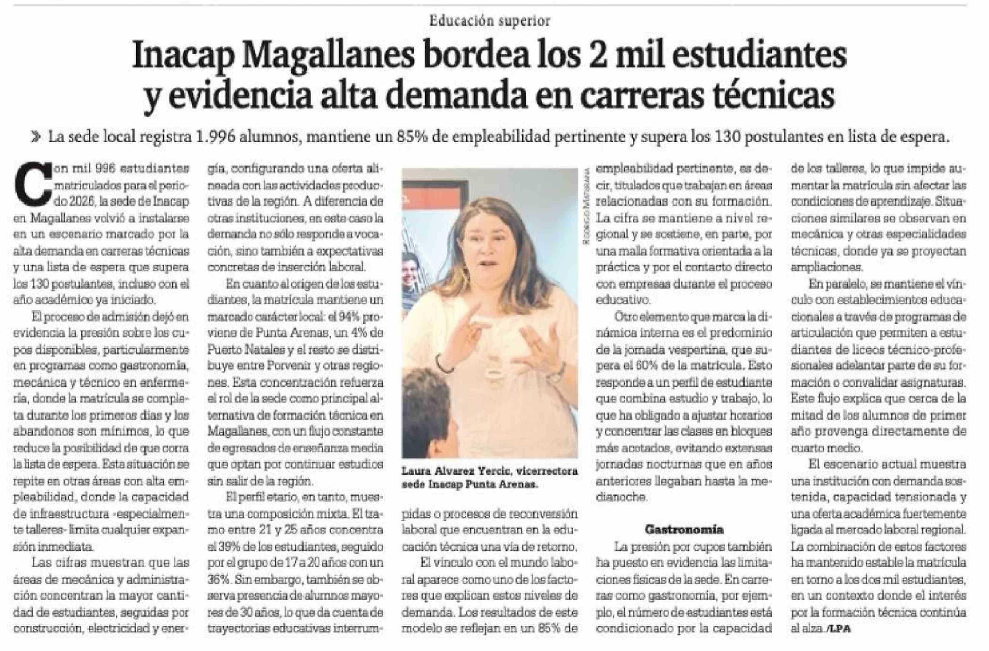 Inacap Magallanes bordea los 2 mil estudiantes y evidencia alta demanda en carreras técnicas