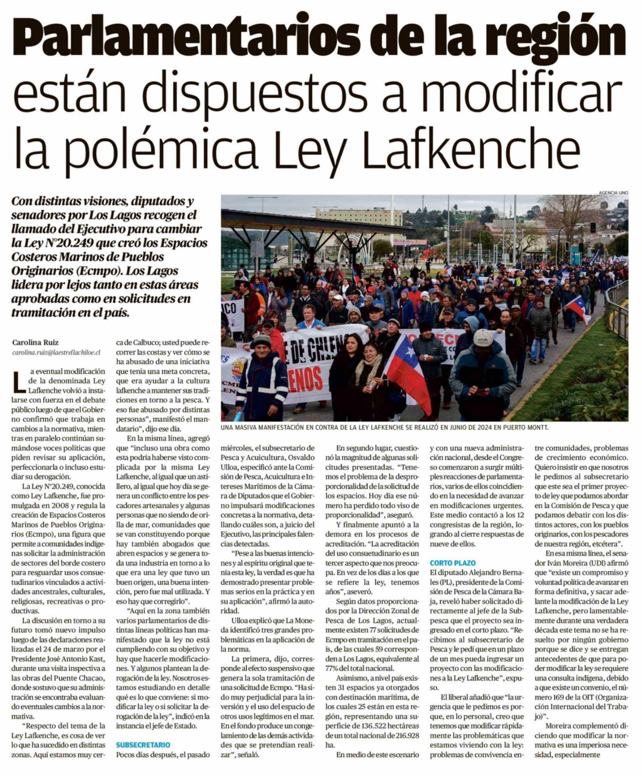 Título: Parlamentarios de la región están dispuestos a modificar la polémica Ley Lafkenche