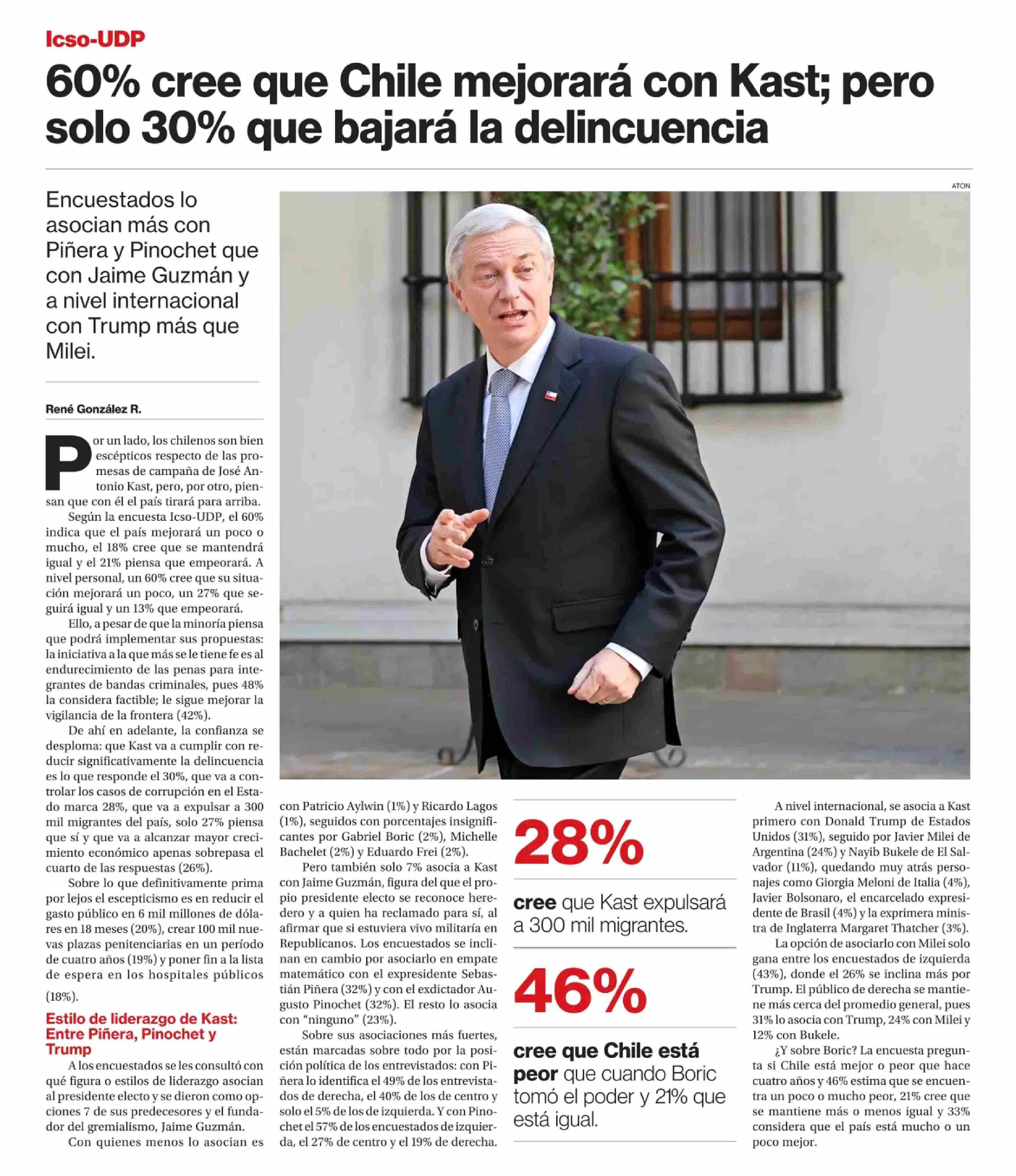 60% cree que Chile mejorará con Kast; pero solo 30% que bajará la delincuencia