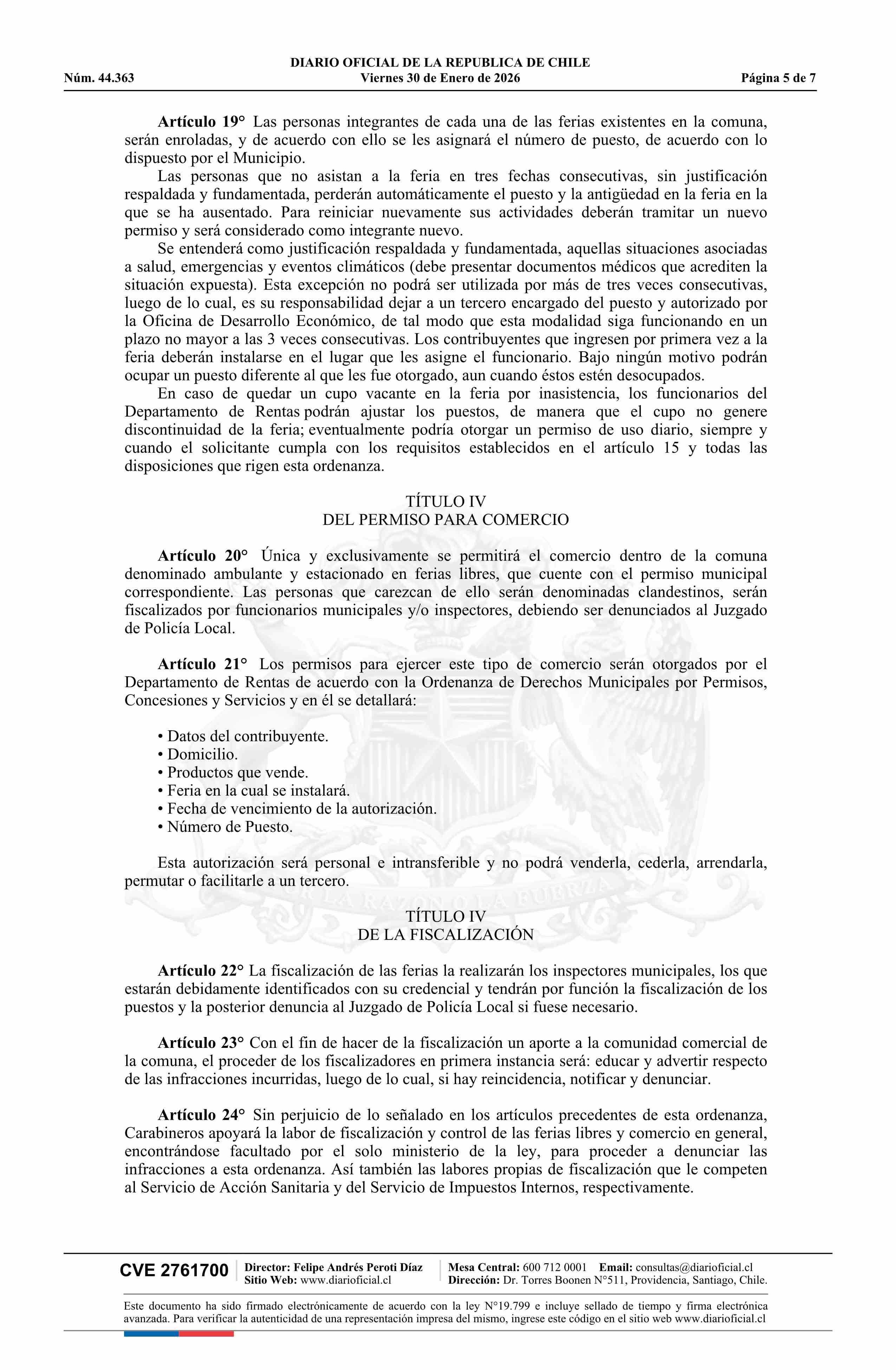 | Título: | Decreto alcaldicio número 123, de 2026.- Aprueba Ordenanza de Ferias Libres, Comercio Ambulante y Uso de Espacios Públicos |