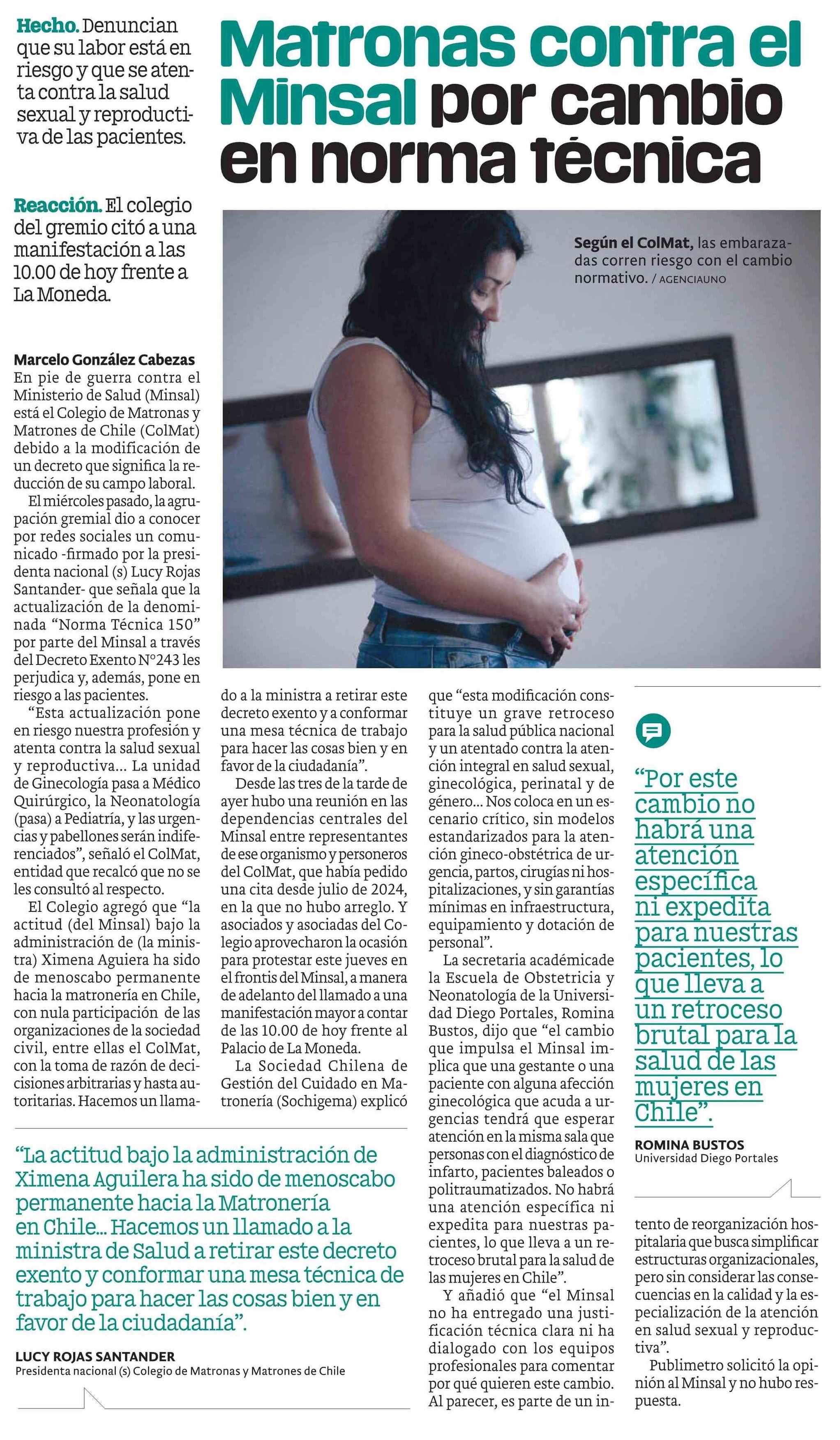 Matronas contra el Minsal por cambio en norma técnica