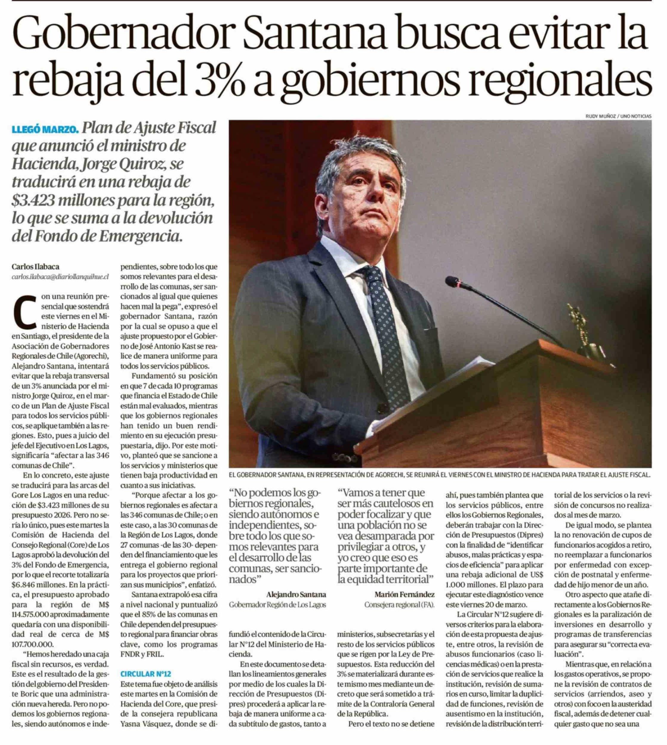 Título: Gobernador Santana busca evitar la rebaja del 3% a gobiernos regionales
