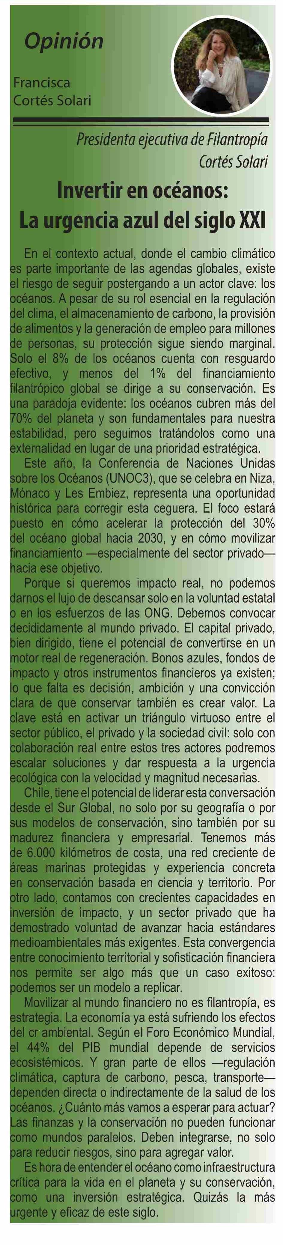 Columnas de Opinión: Invertir en océanos: La urgencia azul del siglo XXI