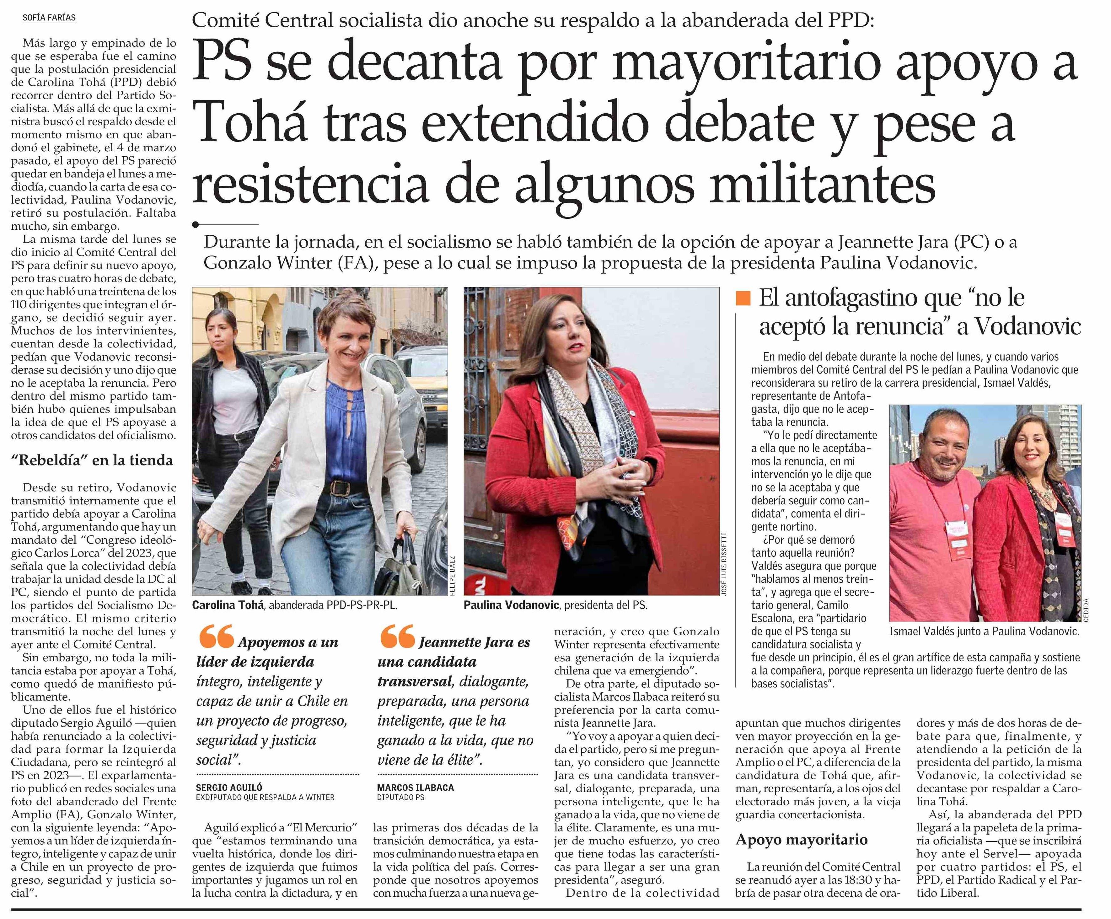 PS se decanta por mayoritario apoyo a Tohá tras extendido debate y pese a resistencia de algunos militantes