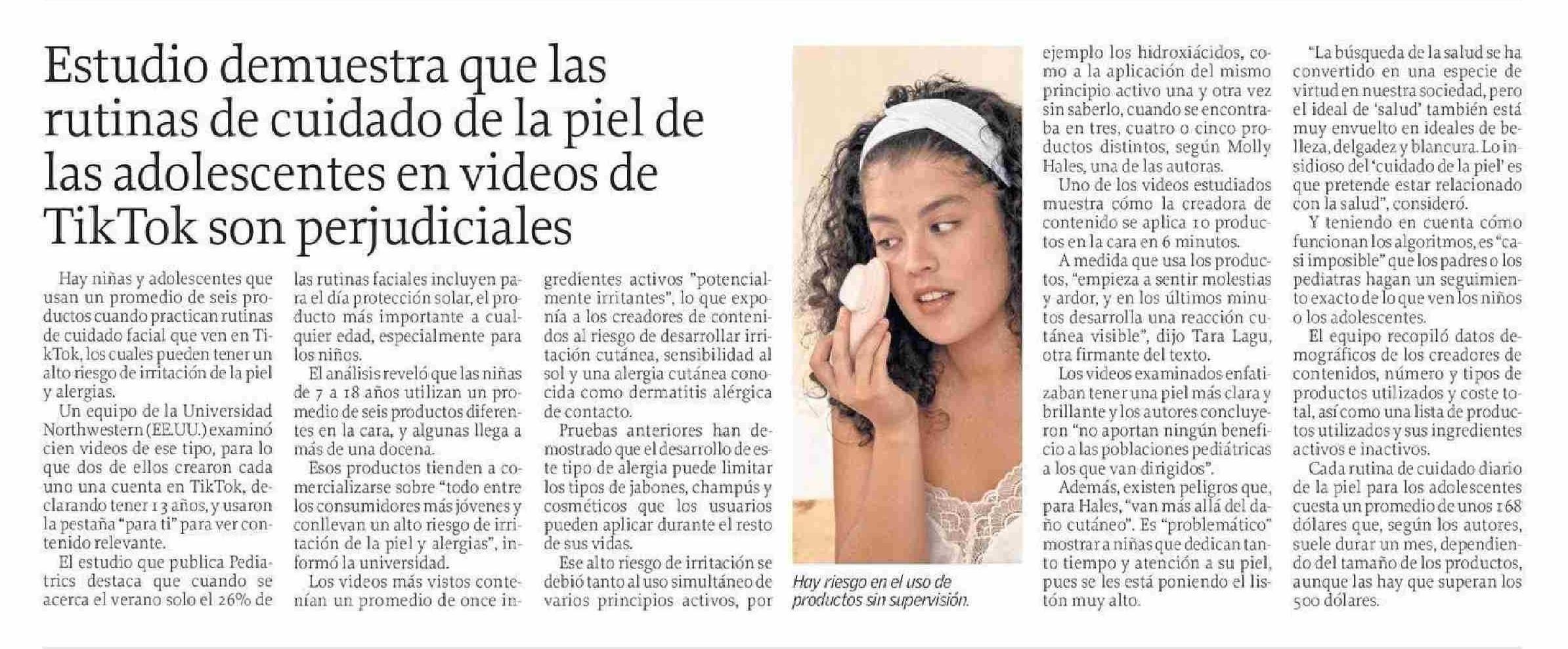 Estudio demuestra que las rutinas de cuidado de la piel de las adolescentes en videos de TikTok son perjudiciales