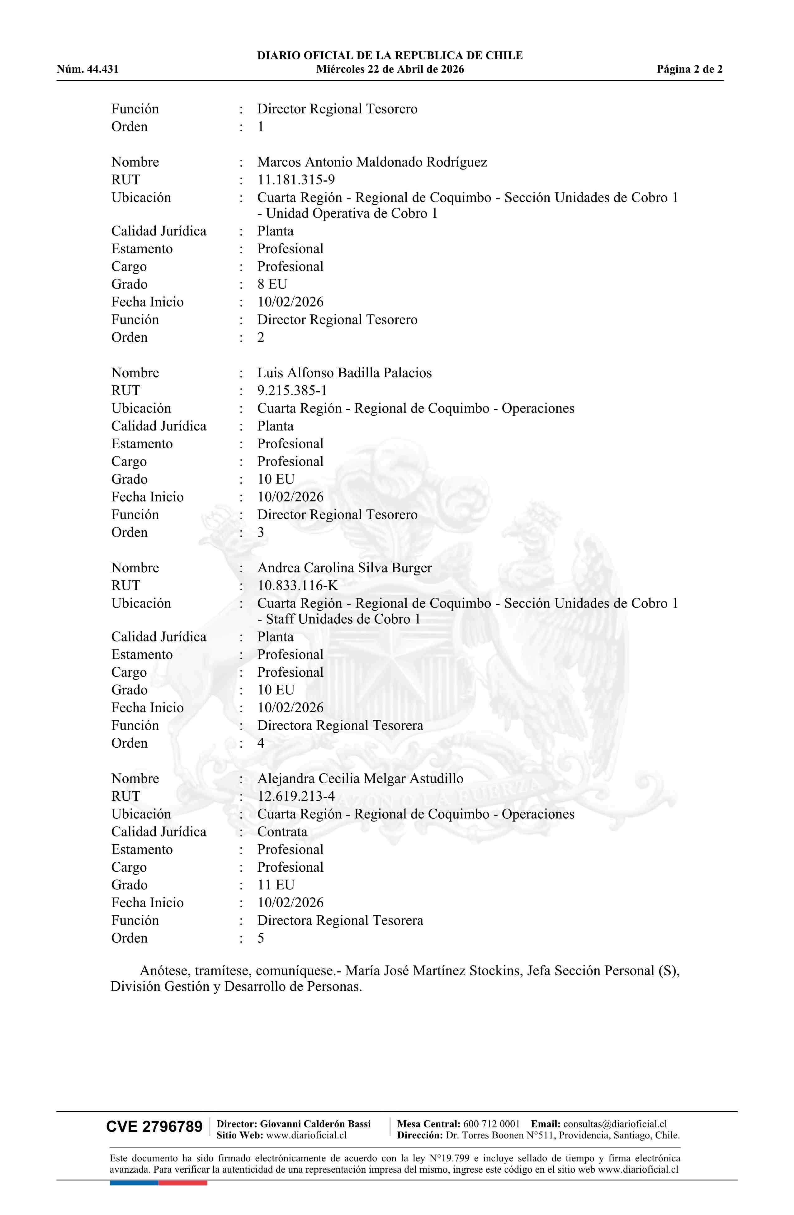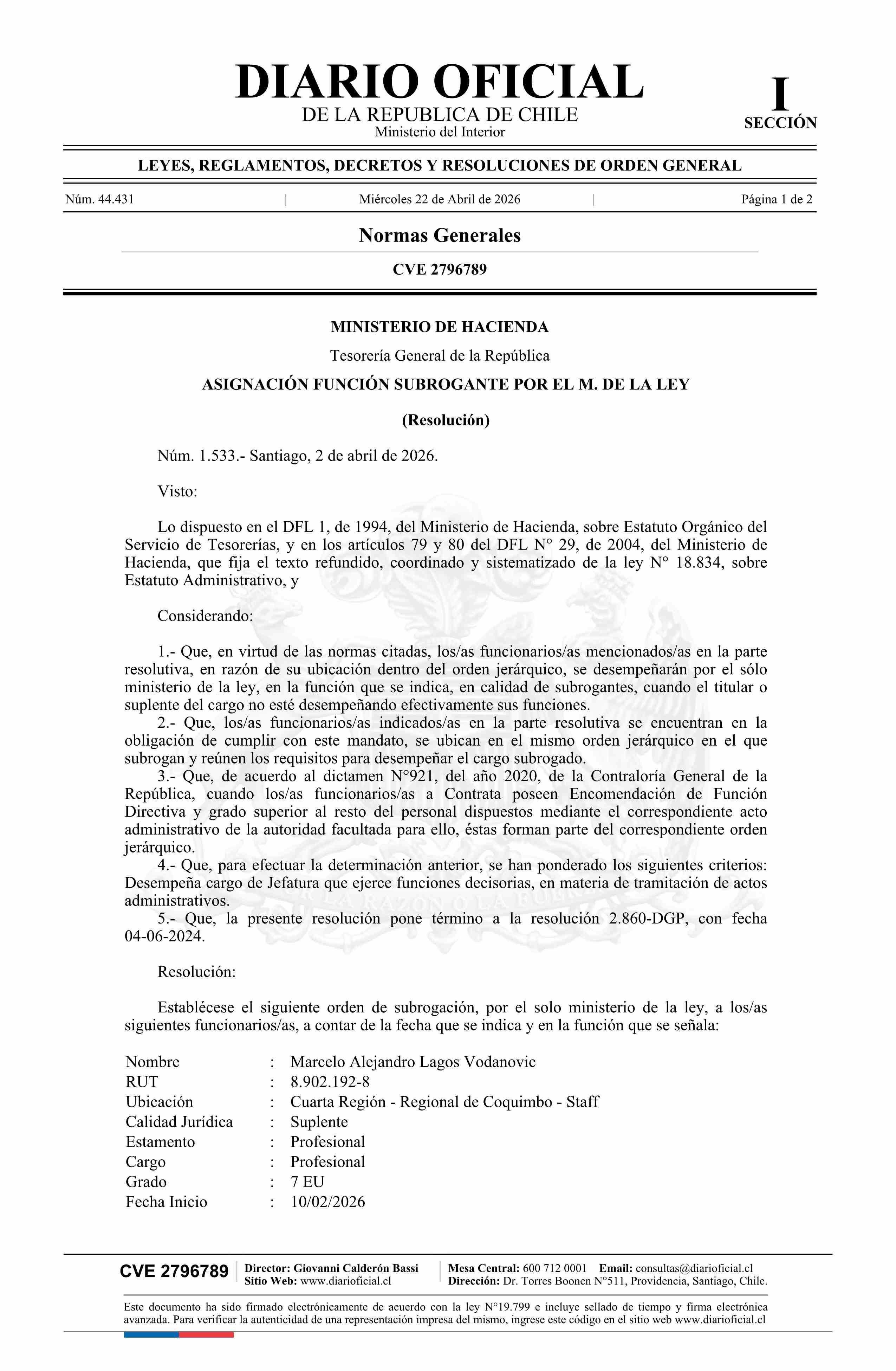 Resolución número 1.533, de 2026.- Asigna orden de subrogación