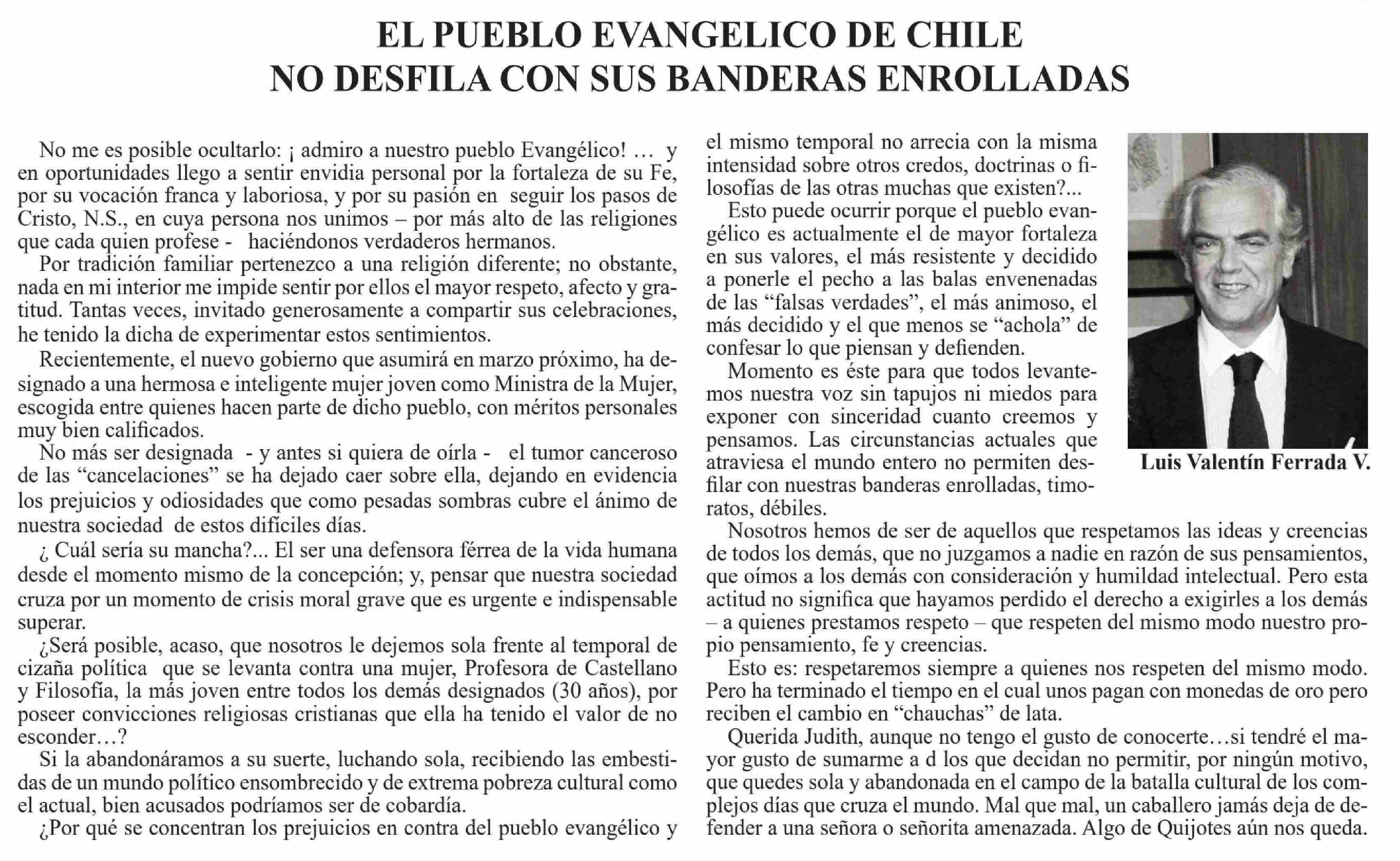 Columnas de Opinión: EL PUEBLO EVANGELICO DE CHILE NO DESFILA CON SUS BANDERAS ENROLLADAS