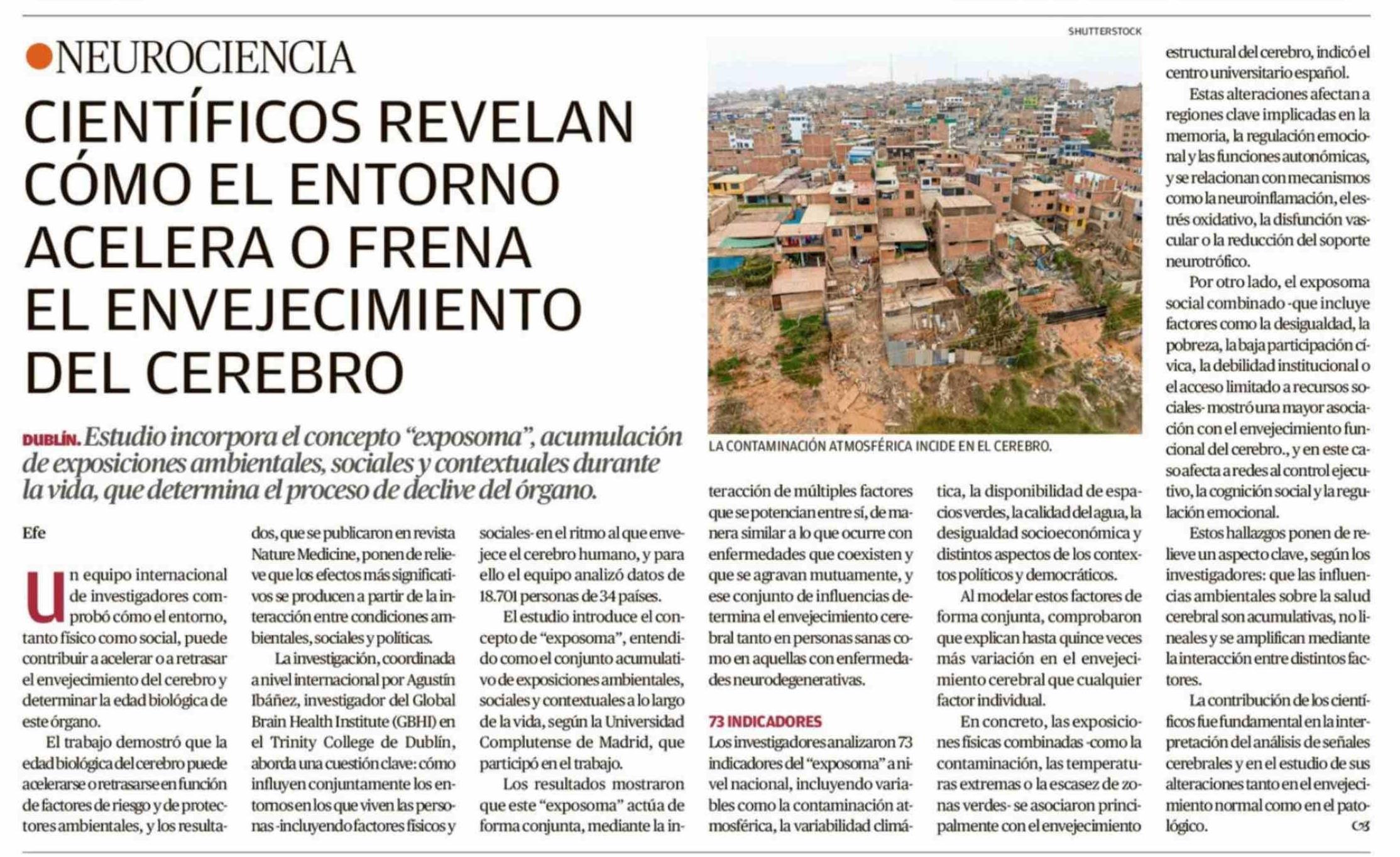 CIENTÍFICOS REVELAN CÓMO EL ENTORNO ACELERA O FRENA EL ENVEJECIMIENTO DEL CEREBRO