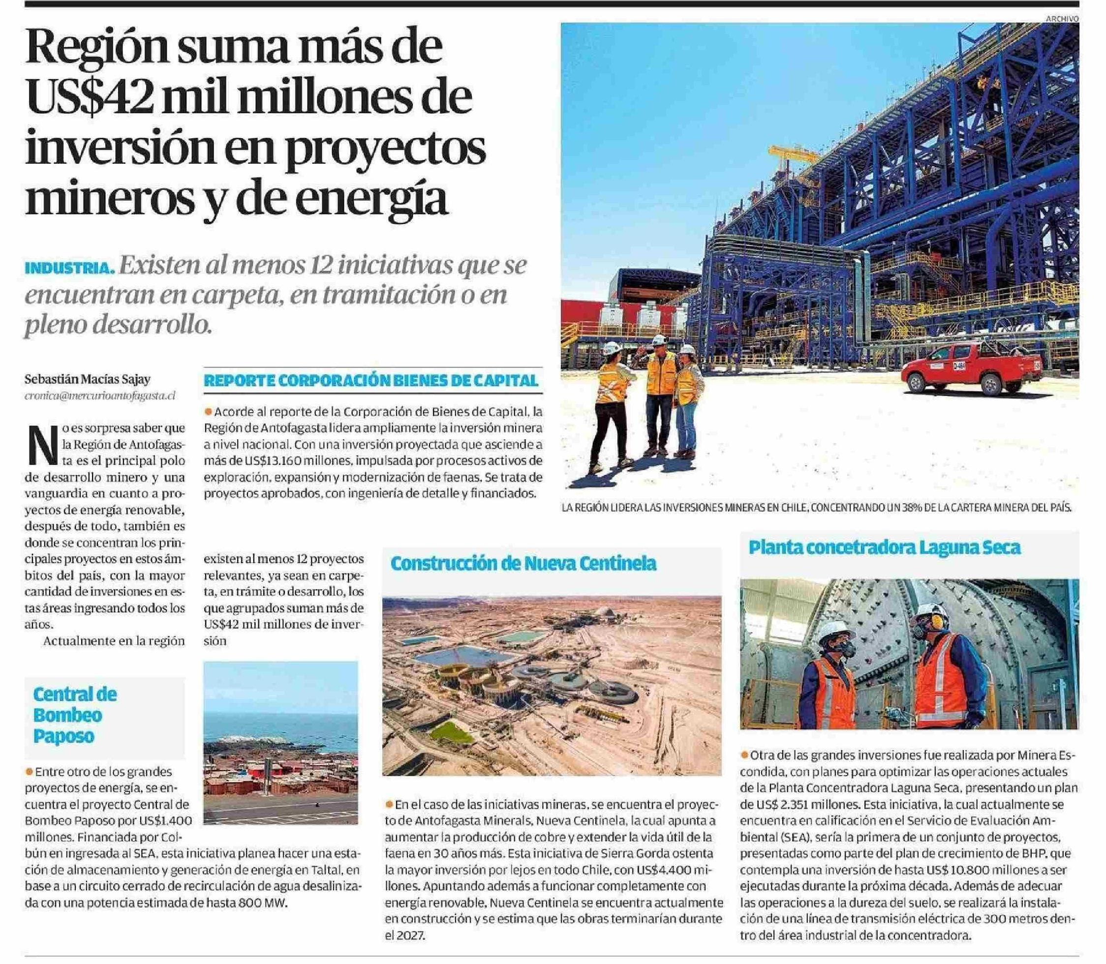 Región suma más de inversión en proyectos mineros y de energía US$42 mil millones de