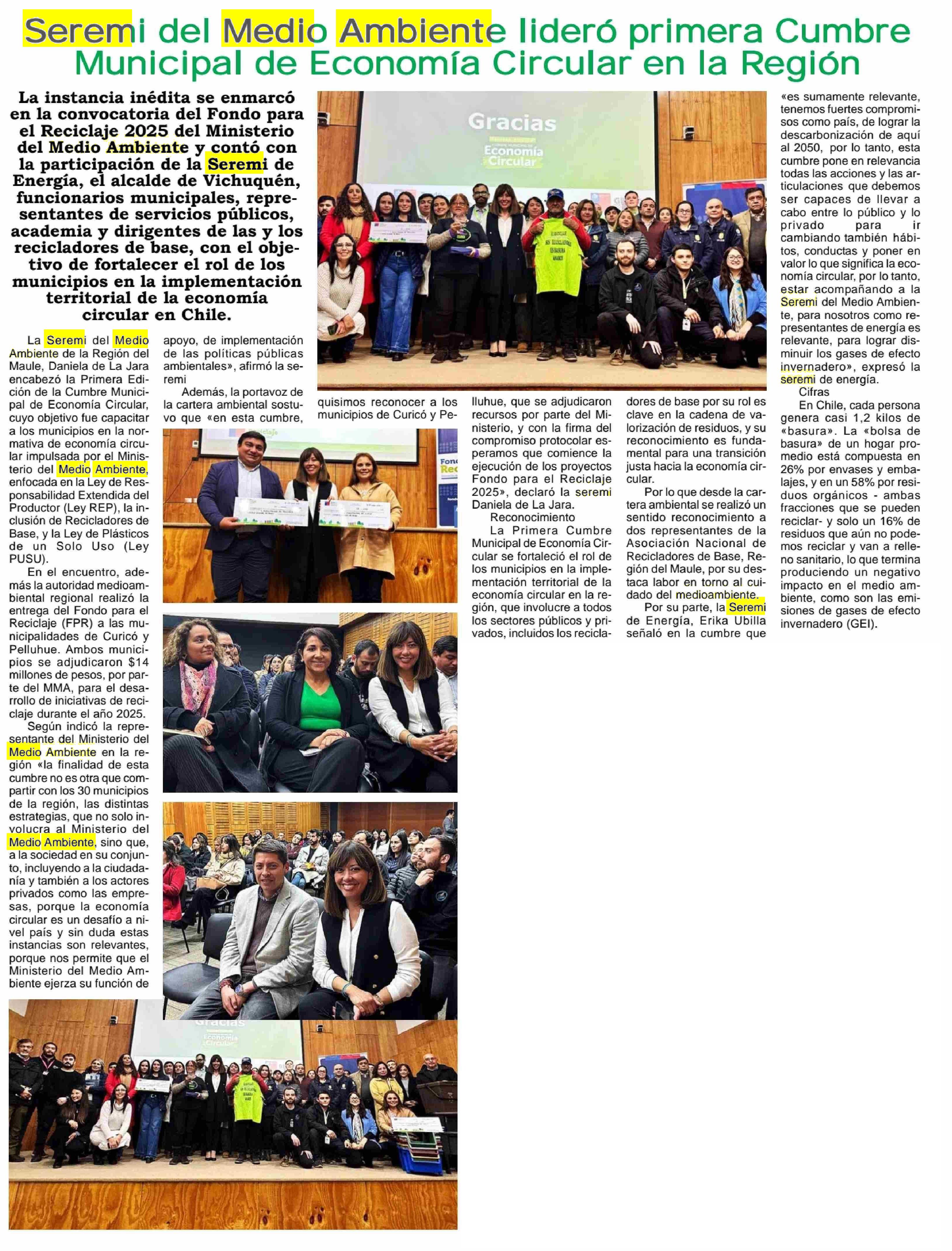 Seremi del Medio Ambiente lideró primera Cumbre Municipal de Economía Circular en la Región