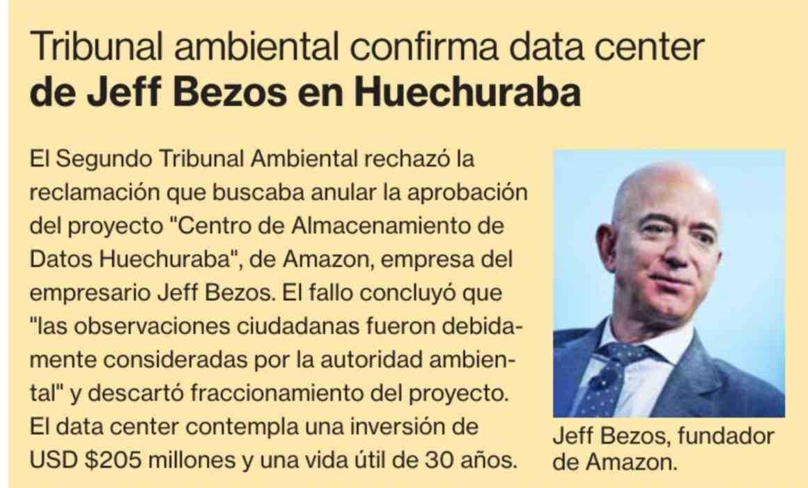 Título: Tribunal ambiental confirma data center de Jeff Bezos en Huechuraba