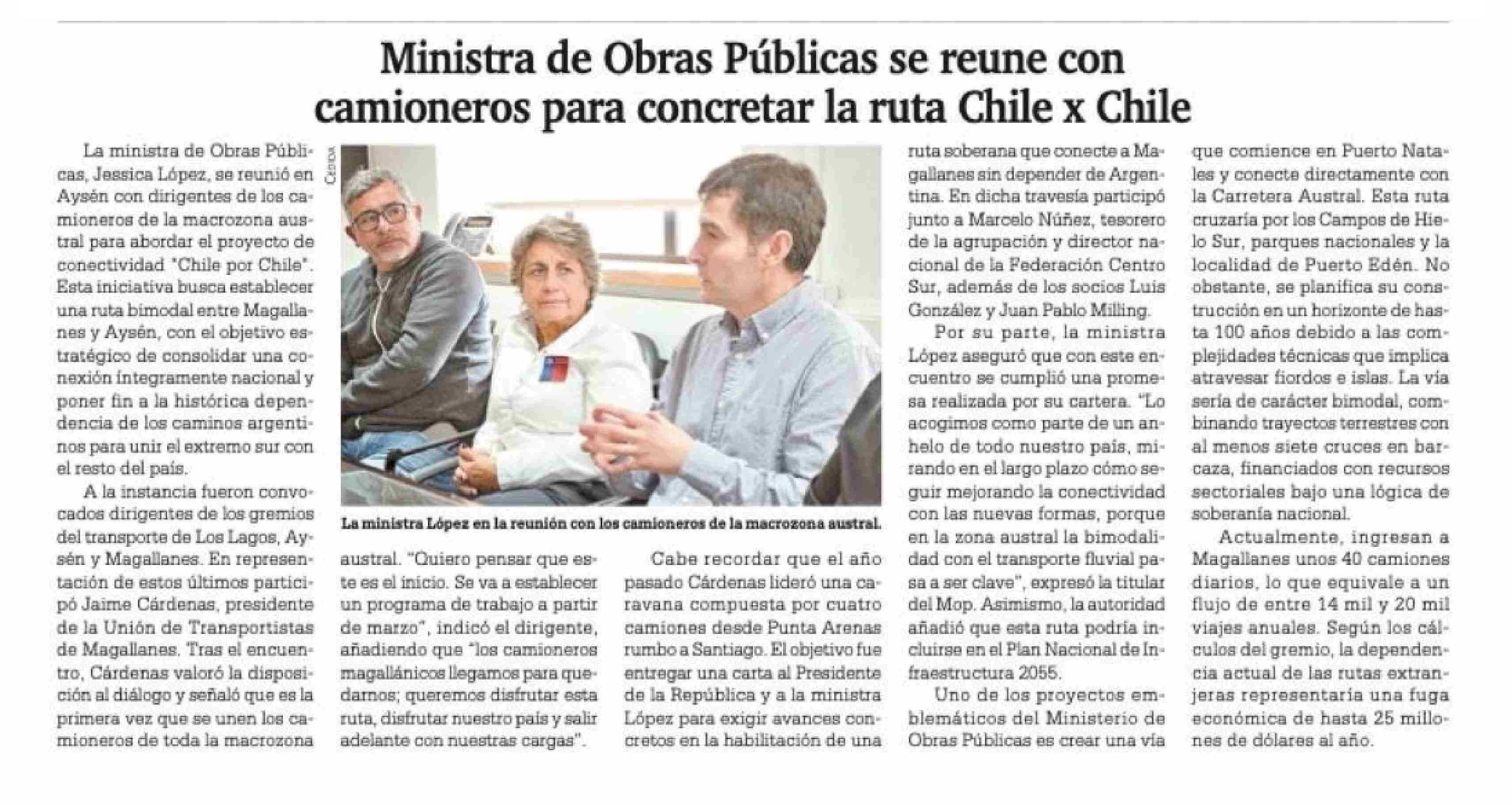 Ministra de Obras Públicas se reune con camioneros para concretar la ruta Chile x Chile