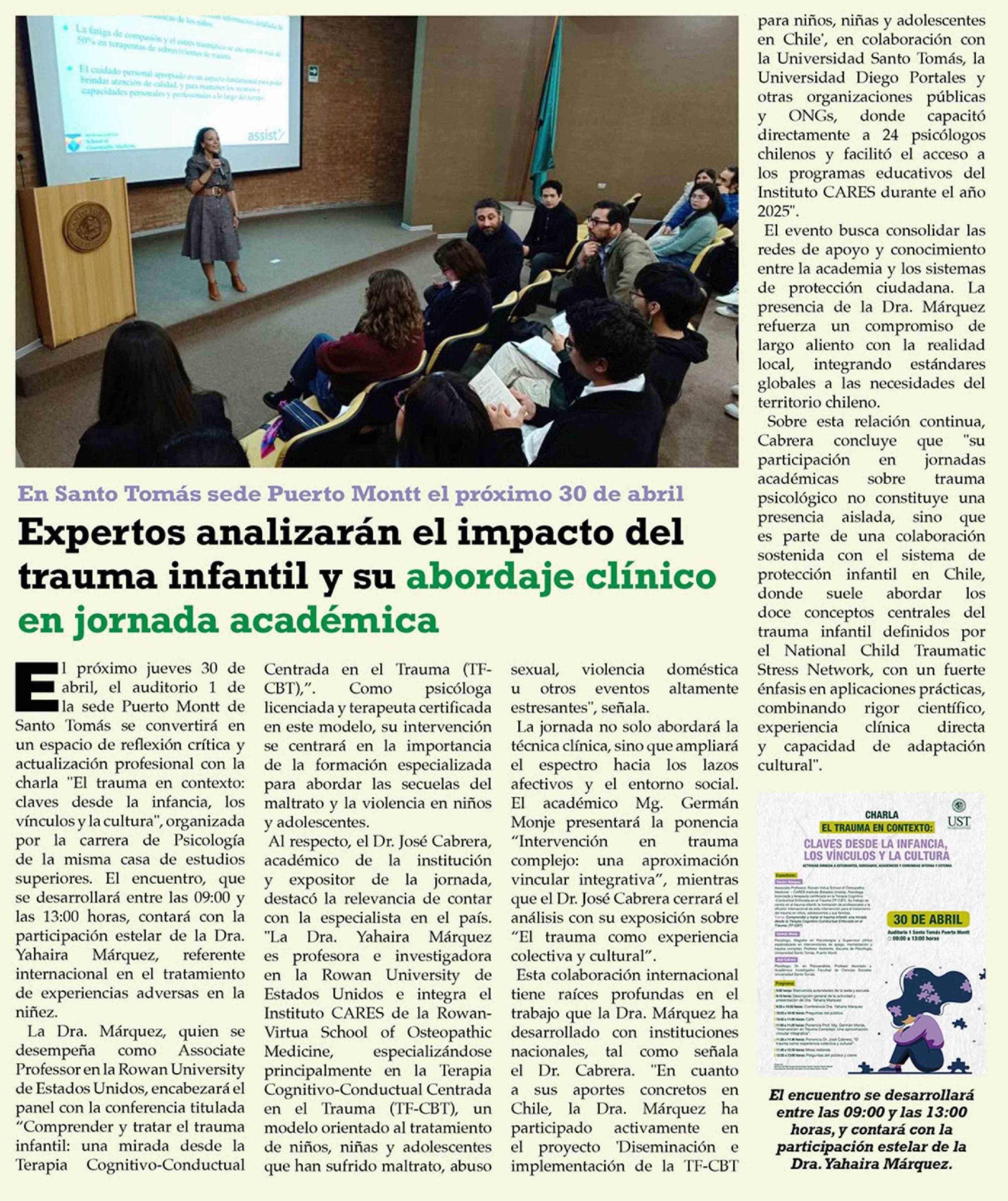 Título: Expertos analizarán el impacto del trauma infantil y su abordaje clínico en jornada académica