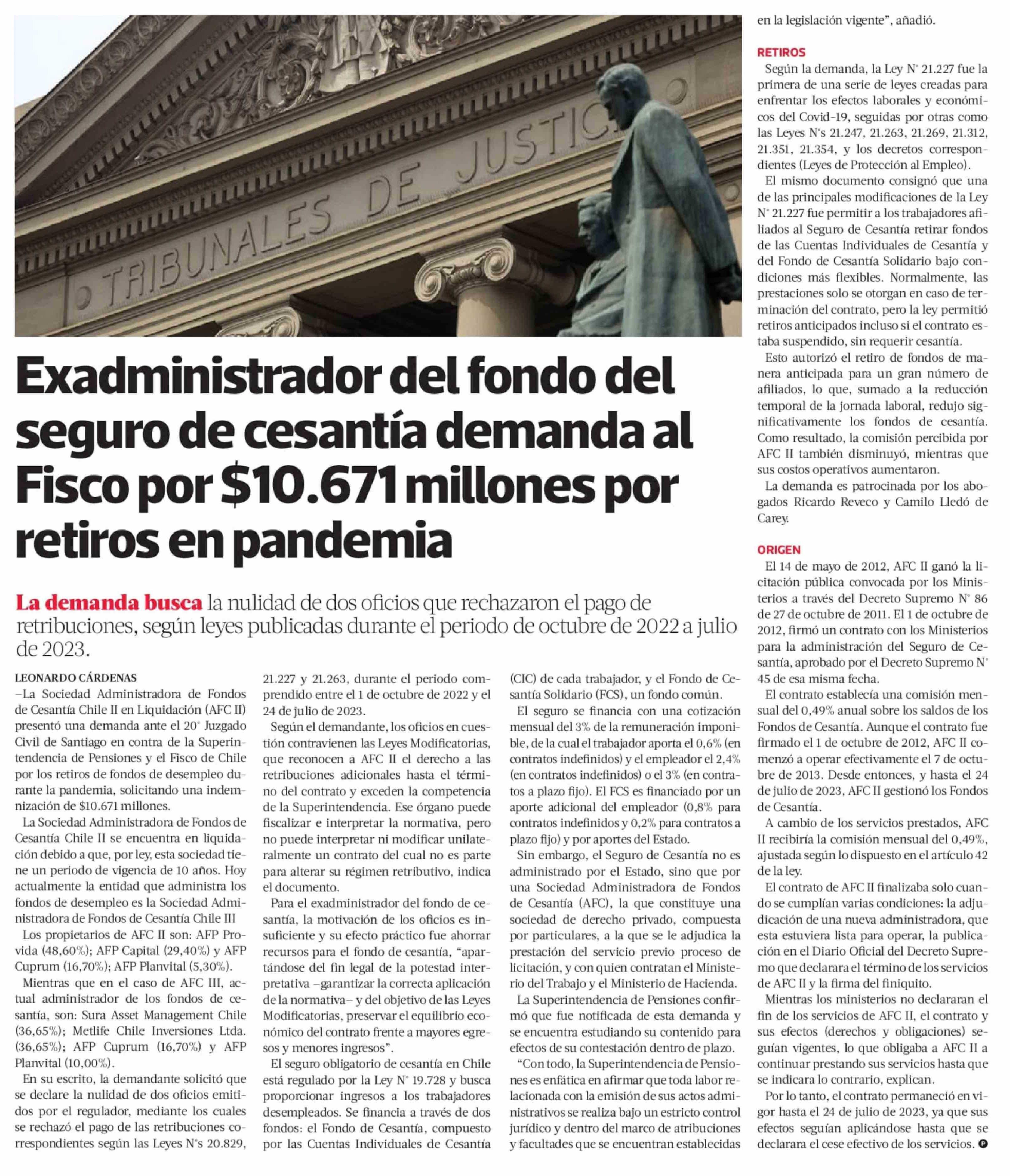 Exadministrador del fondo del seguro de cesantía demanda al Fisco por $10.671 millones por retiros en pandemia