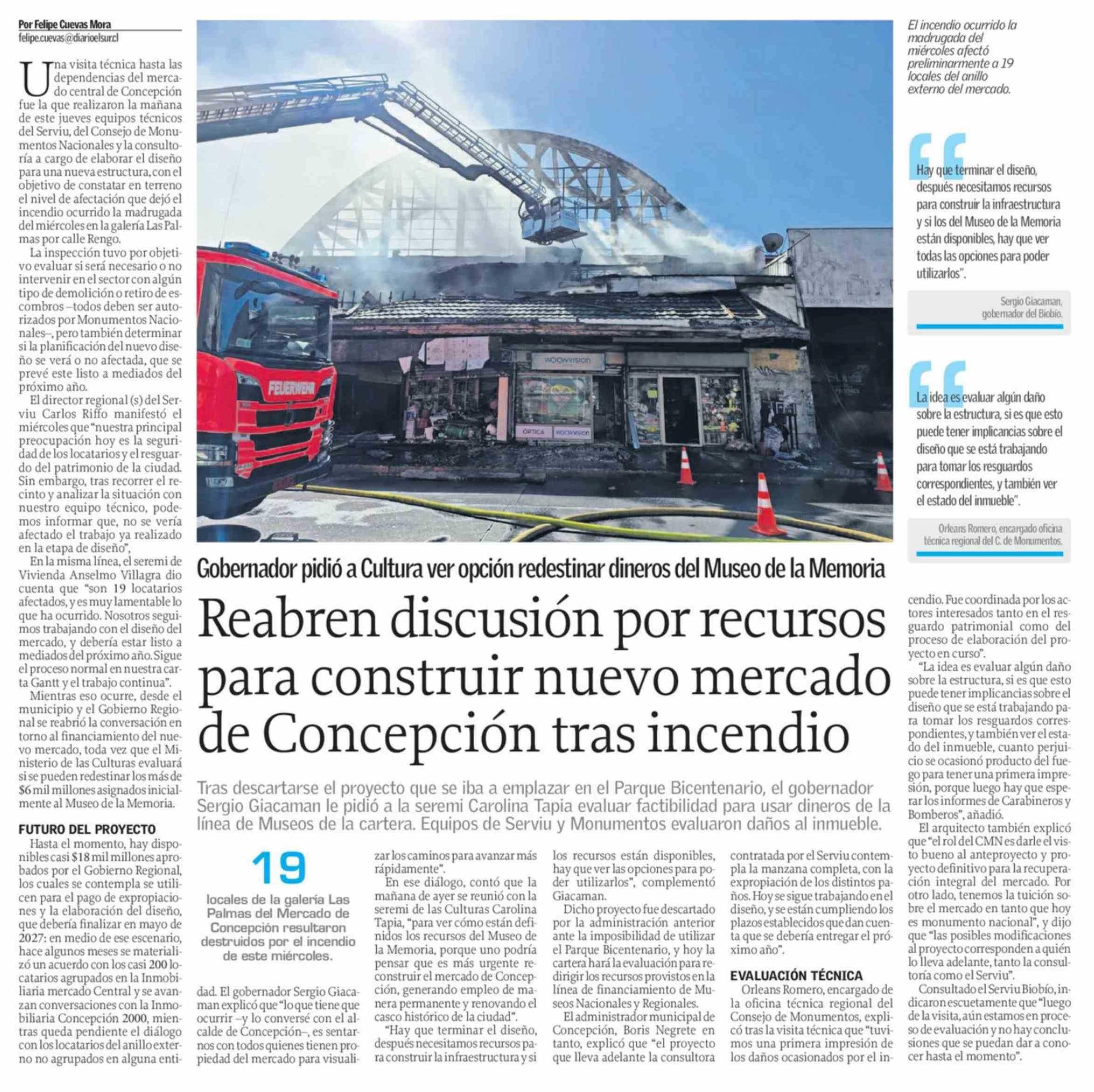Reabren discusión por recursos para construir nuevo mercado de Concepción tras incendio