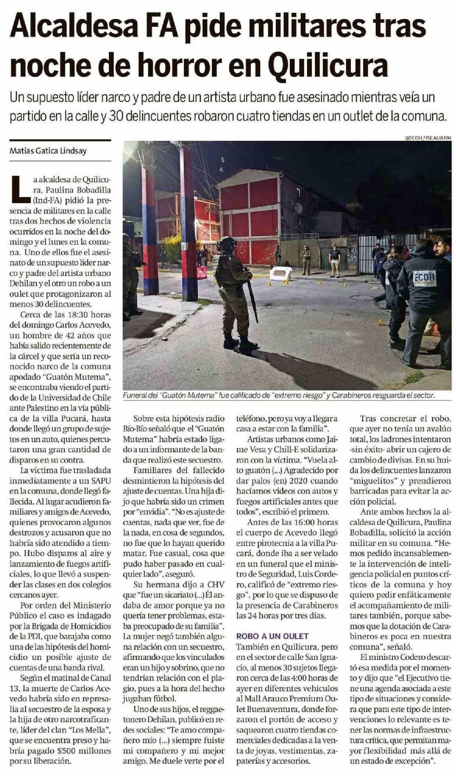 Alcaldesa FA pide militares tras noche de horror en Quilicura