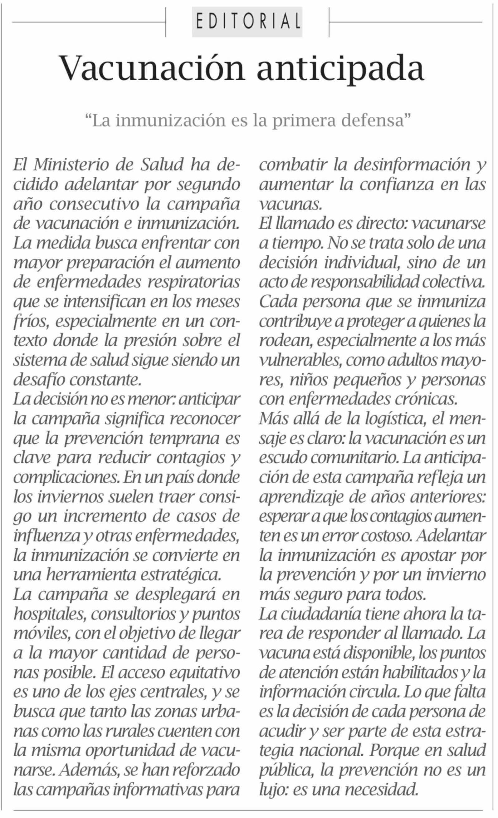 Editorial: Vacunación anticipada