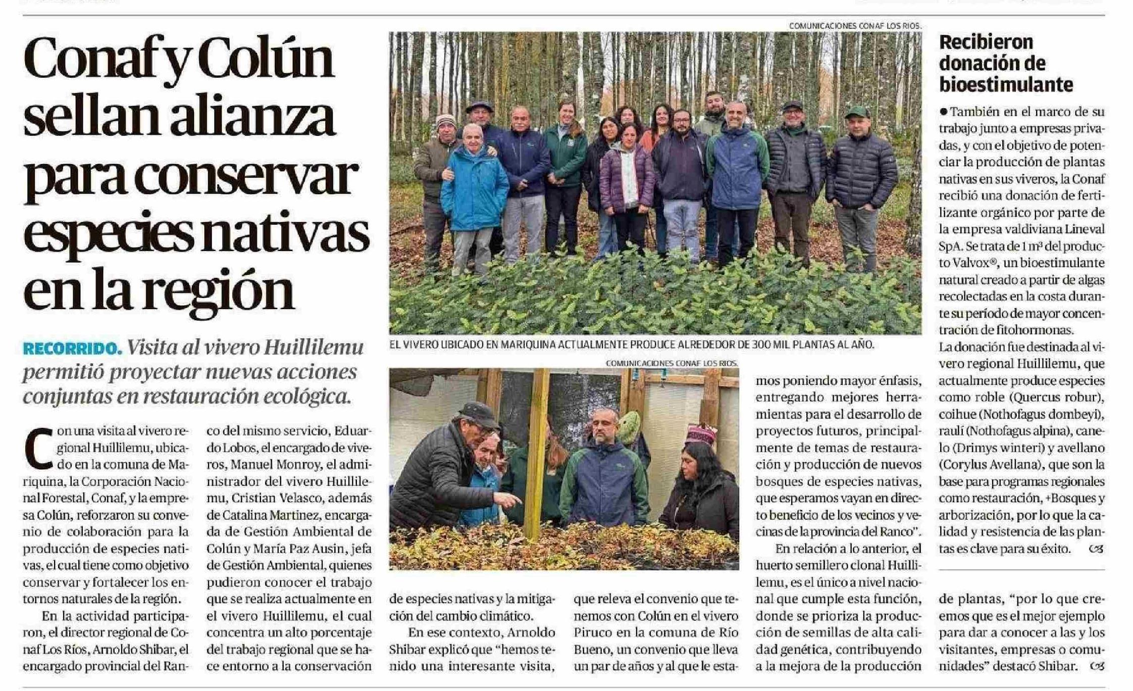 Conaf y Colún sellan alianza para conservar especies nativas en la región
