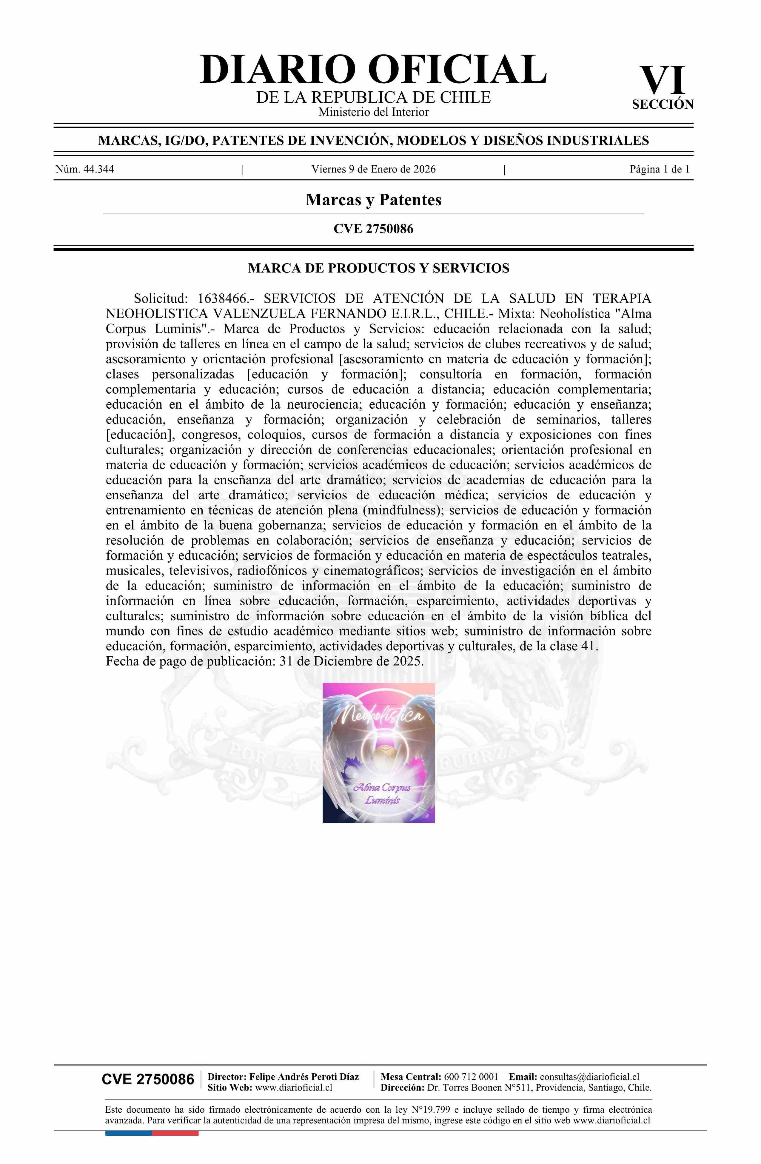 Solicitud número 1638466.- Neoholística "Alma Corpus Luminis"