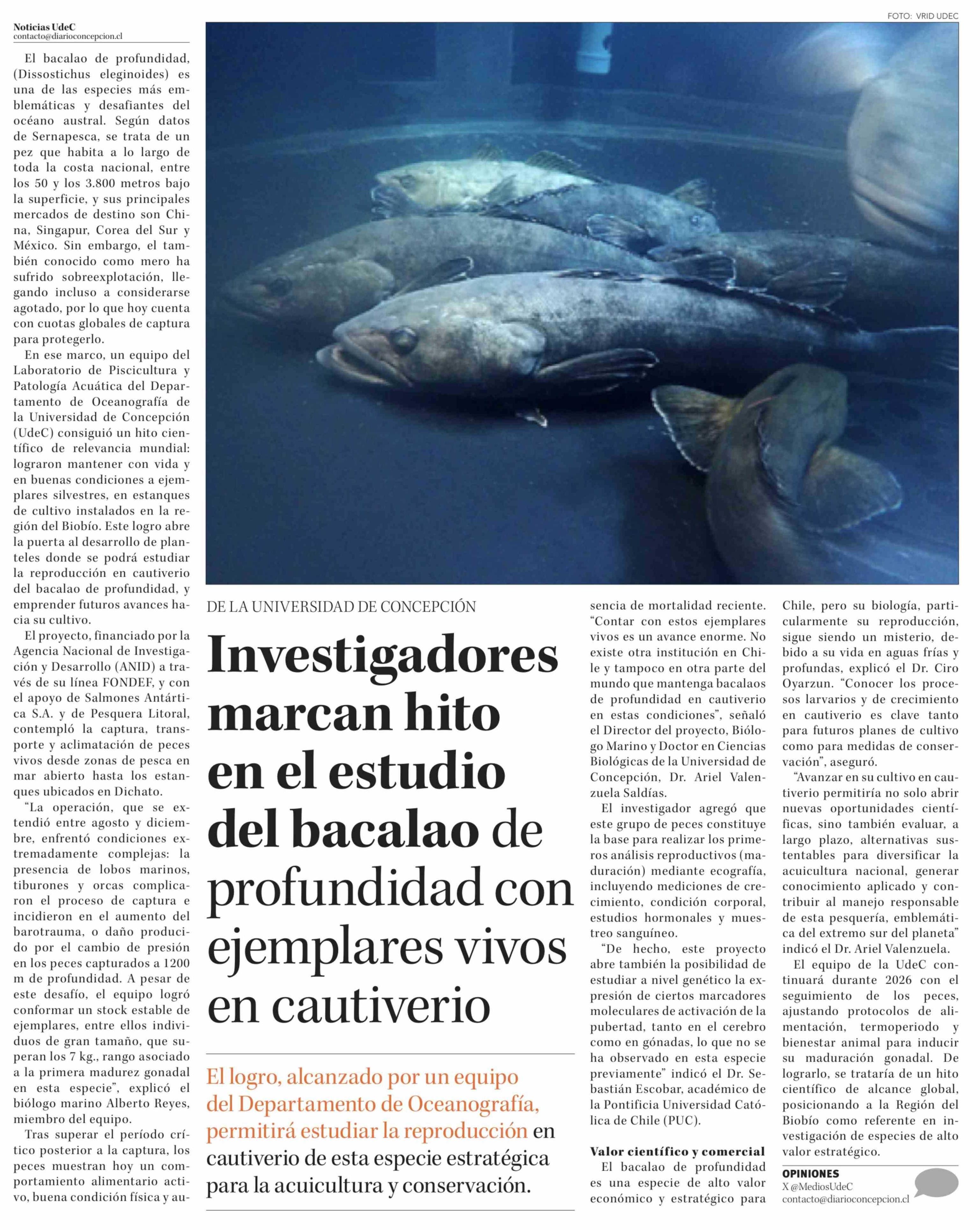 Investigadores marcan hito en el estudio del bacalao de profundidad con ejemplares vivos en cautiverio