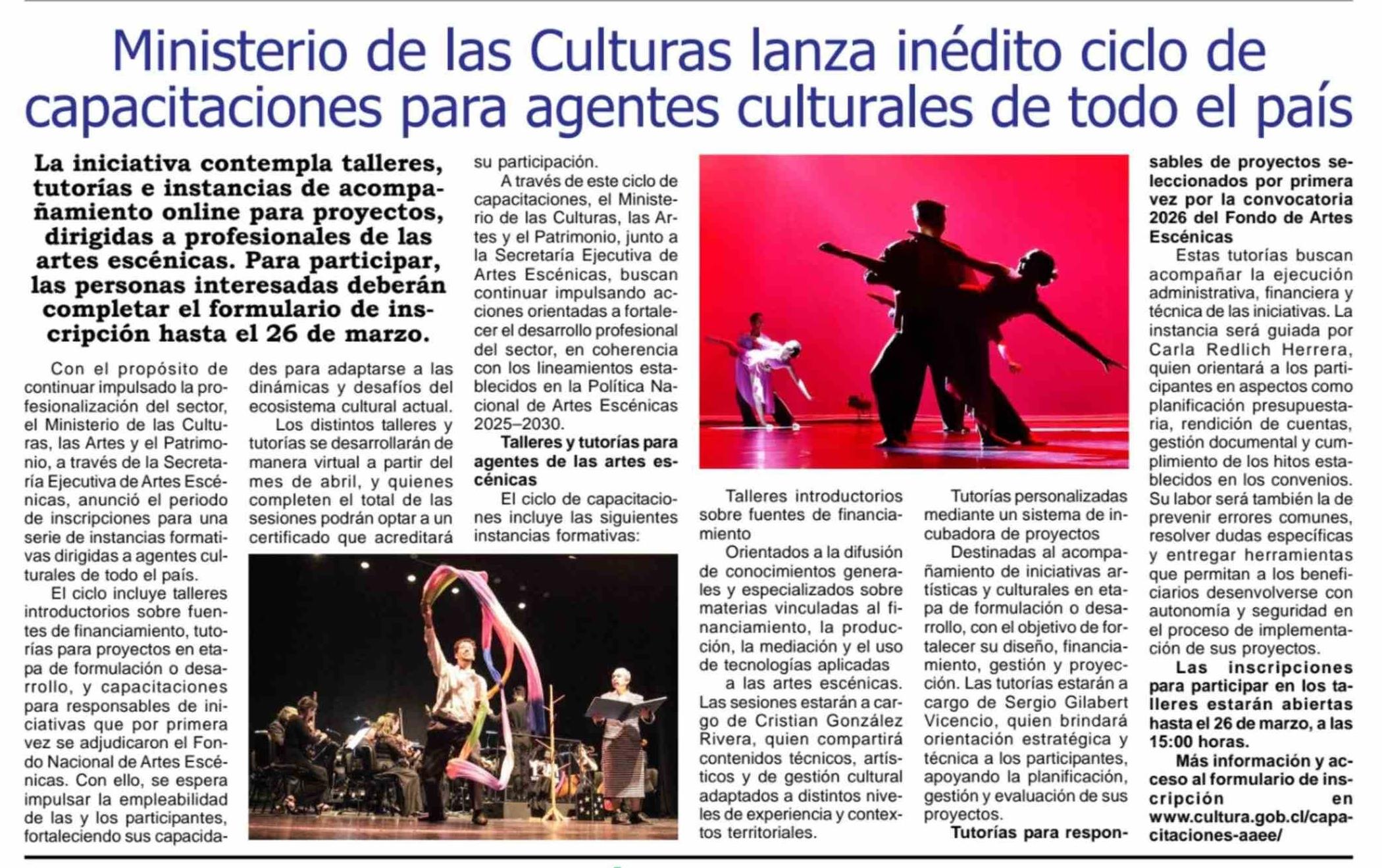 Ministerio de las Culturas lanza inédito ciclo de capacitaciones para agentes culturales de todo el país