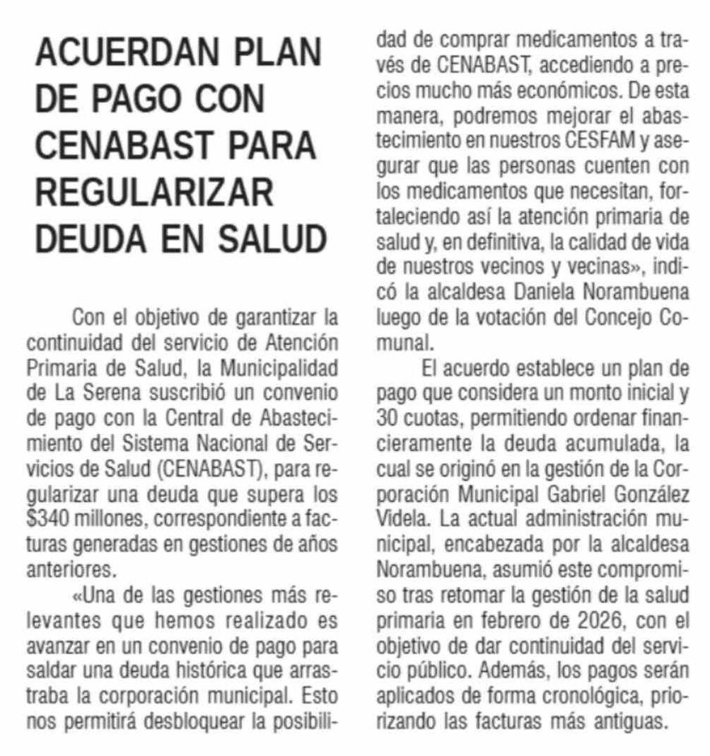 Título: ACUERDAN PLAN DE PAGO CON CENABAST PARA REGULARIZAR DEUDA EN SALUD
