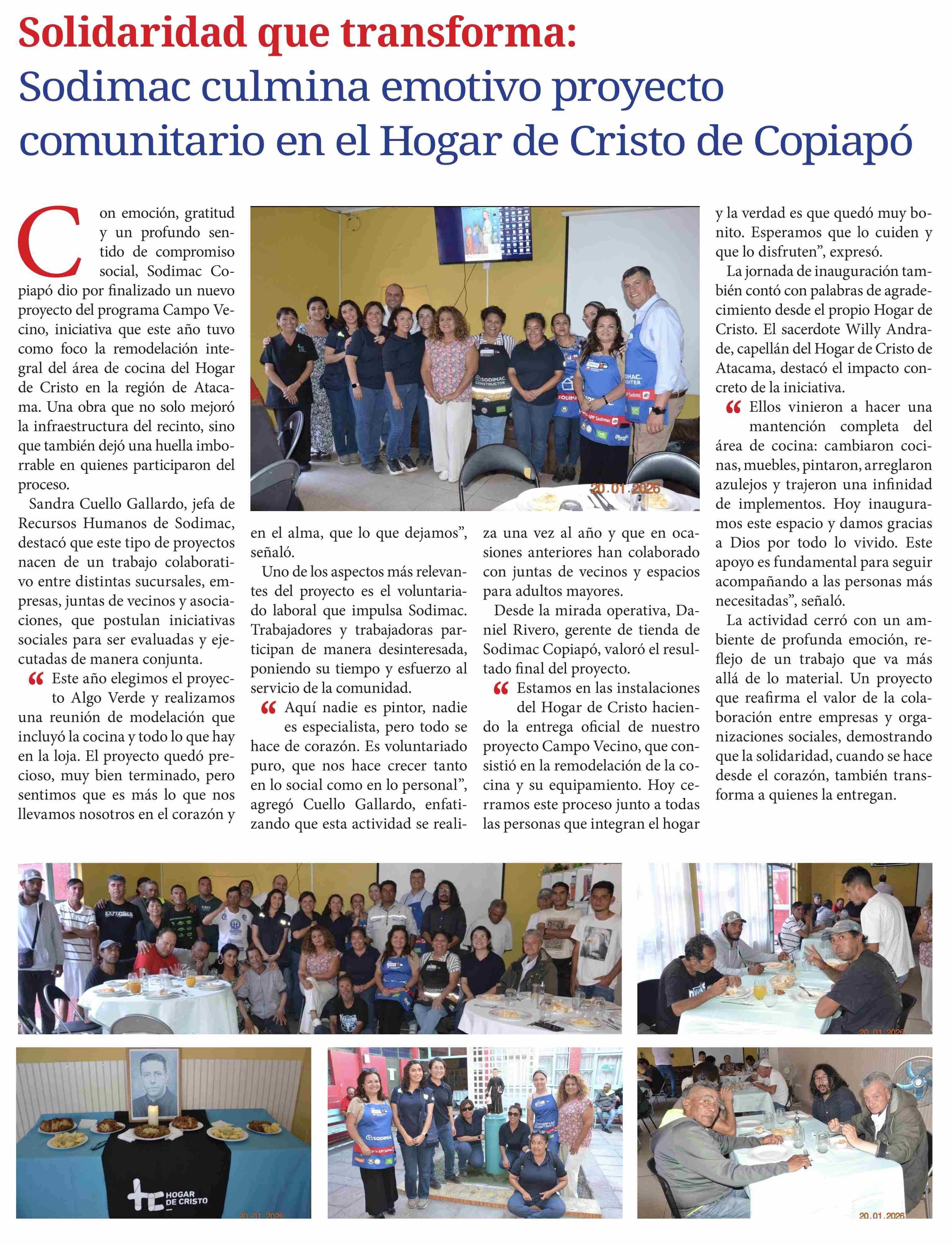 Solidaridad que transforma: Sodimac culmina emotivo proyecto comunitario en el Hogar de Cristo de Copiapó