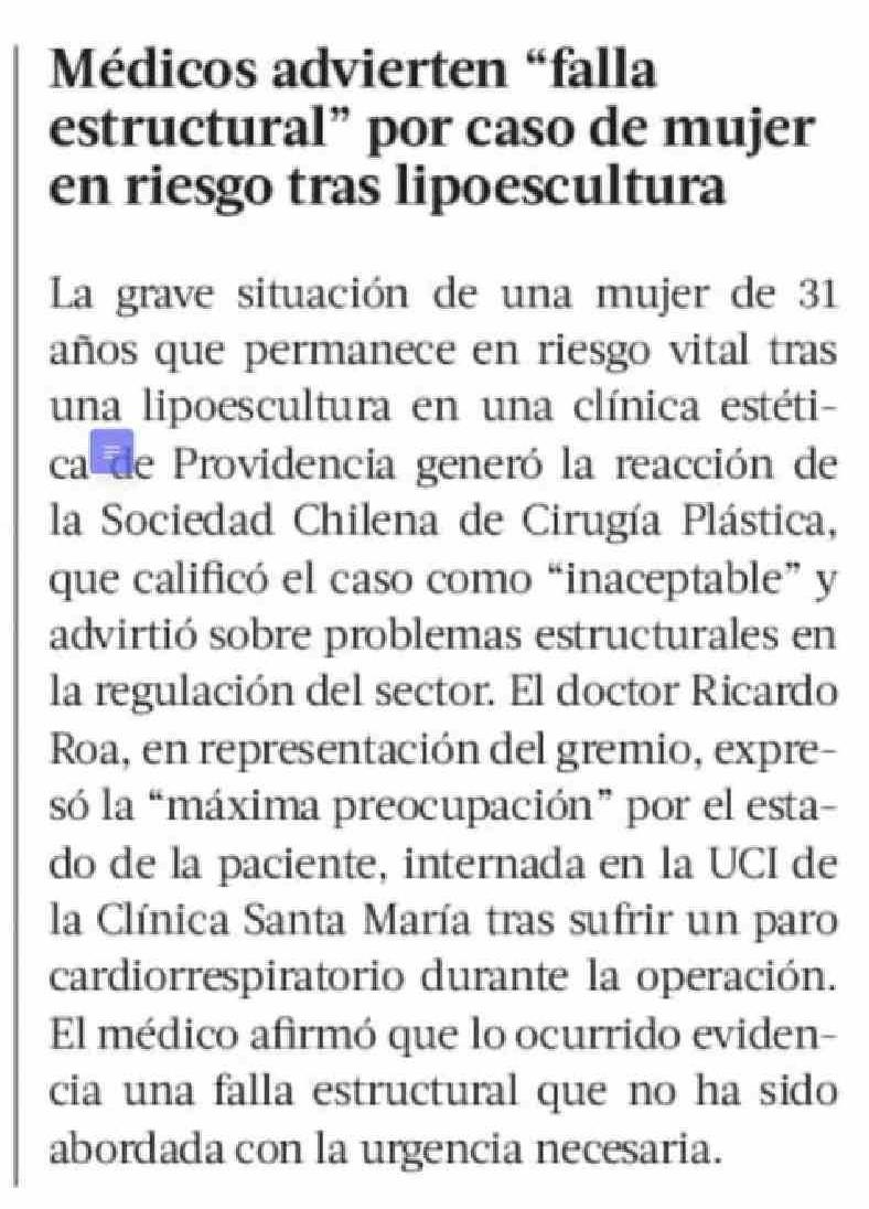 Médicos advierten "falla estructural" por caso de mujer en riesgo tras lipoescultura