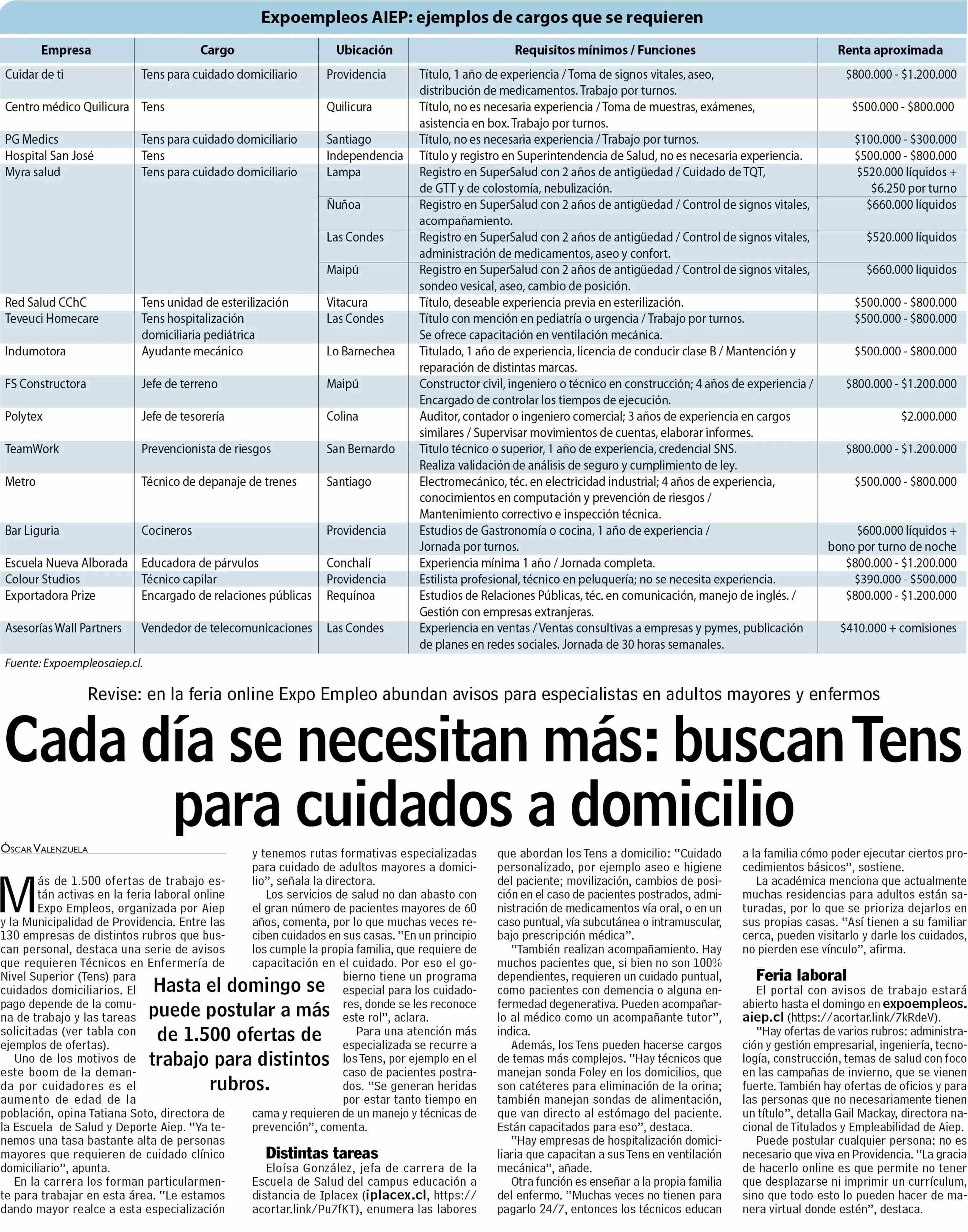 Cada día se necesitan más: buscan Tens para cuidados a domicilio