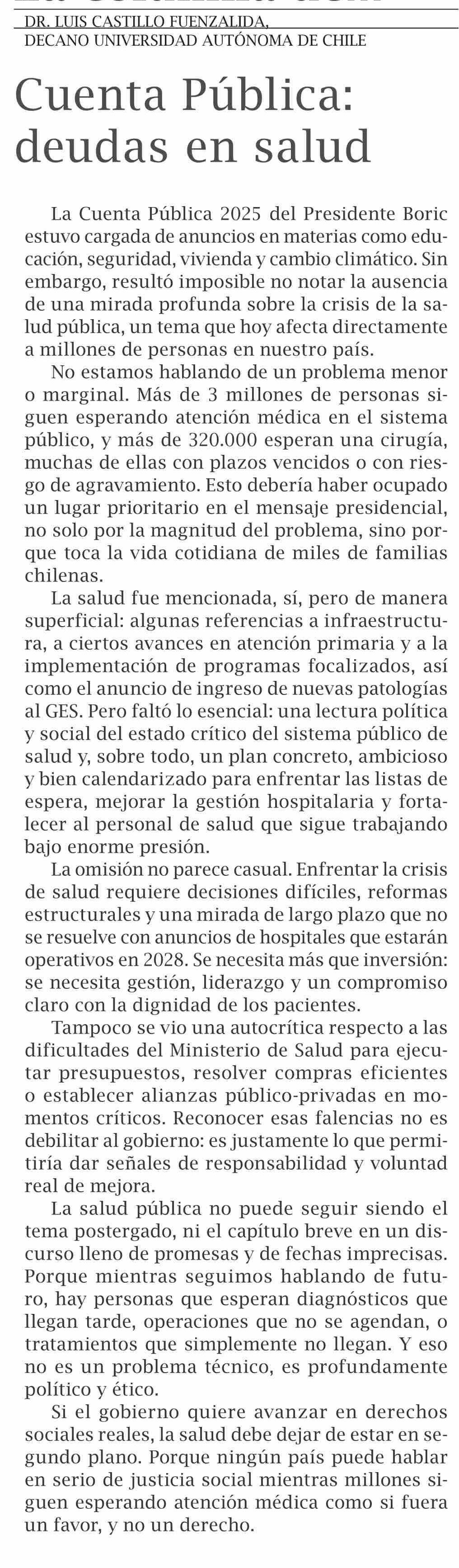 Columnas de Opinión: Cuenta Pública: deudas en salud