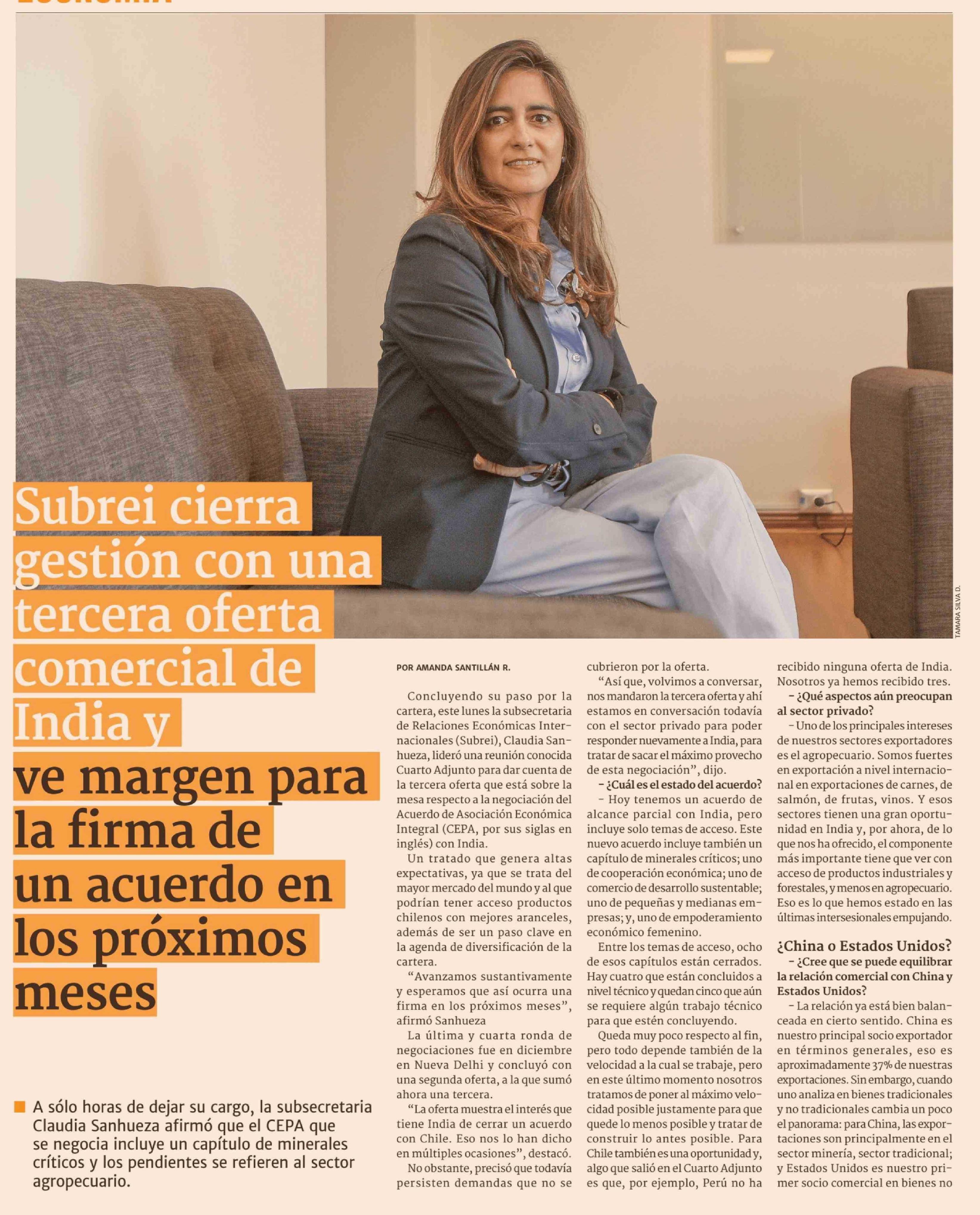 Subrei cierra gestión con una tercera oferta comercial de India y ve margen para la firma de un acuerdo en los próximos meses