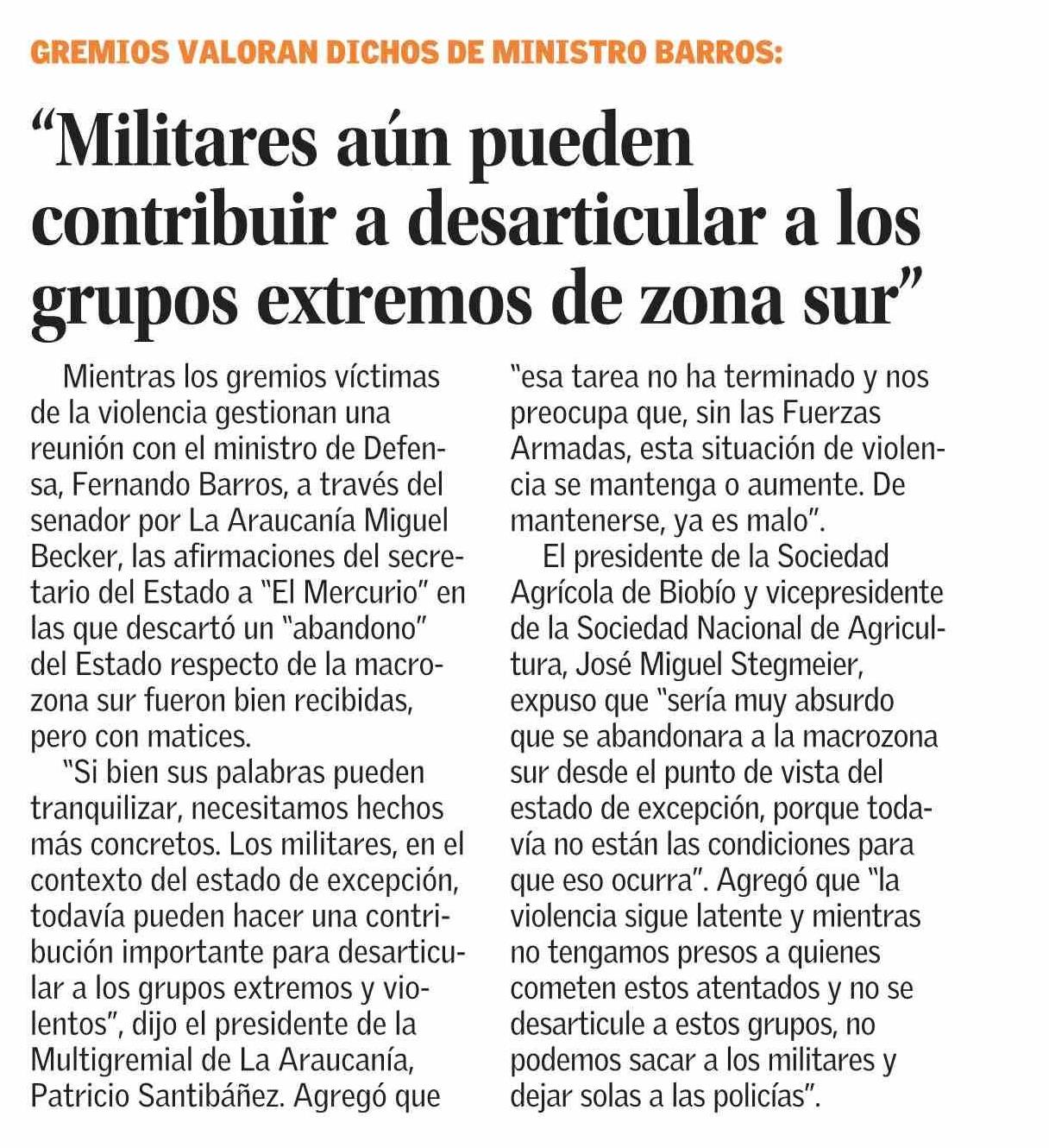 "Militares aún pueden contribuir a desarticular a los grupos extremos de zona sur"