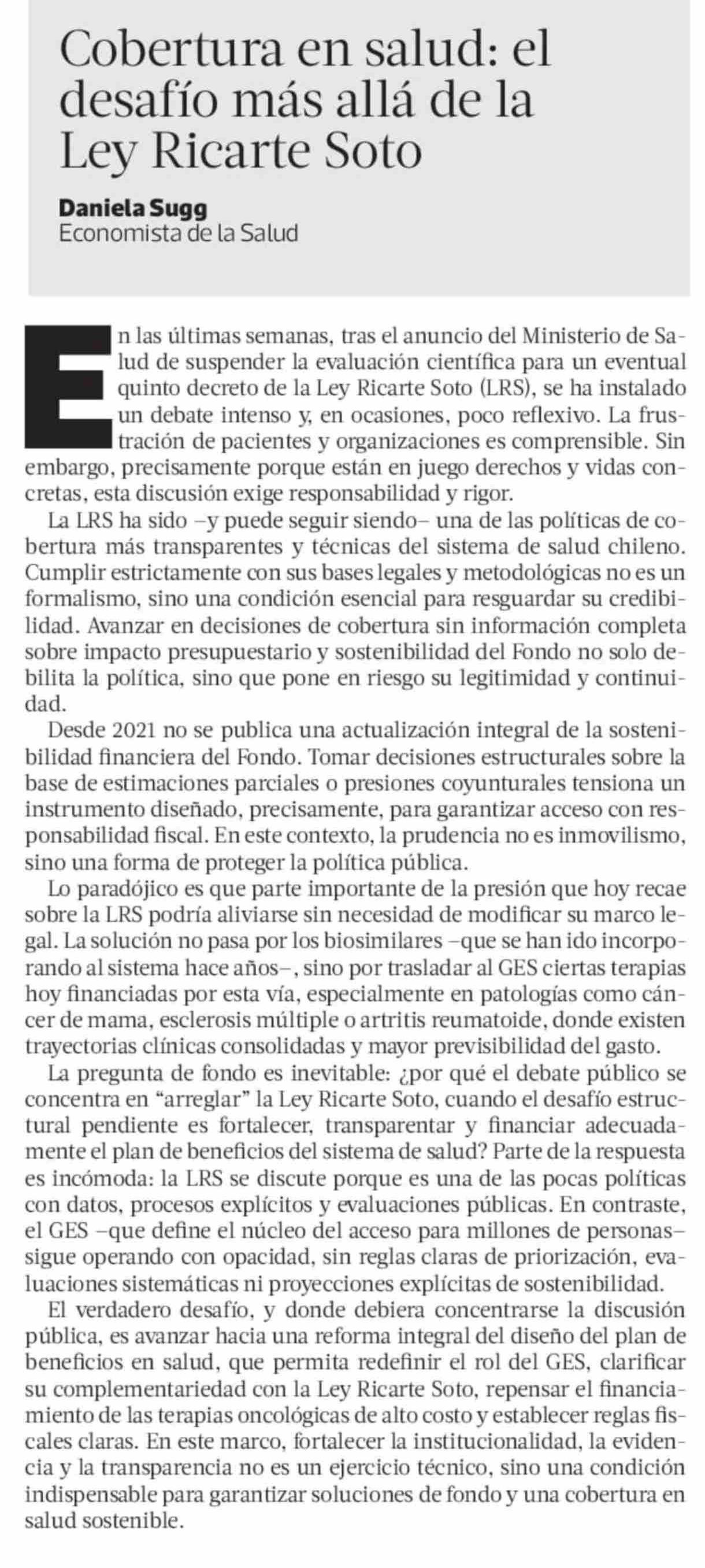 Columnas de Opinión: Cobertura en salud: el desafío más allá de la Ley Ricarte Soto