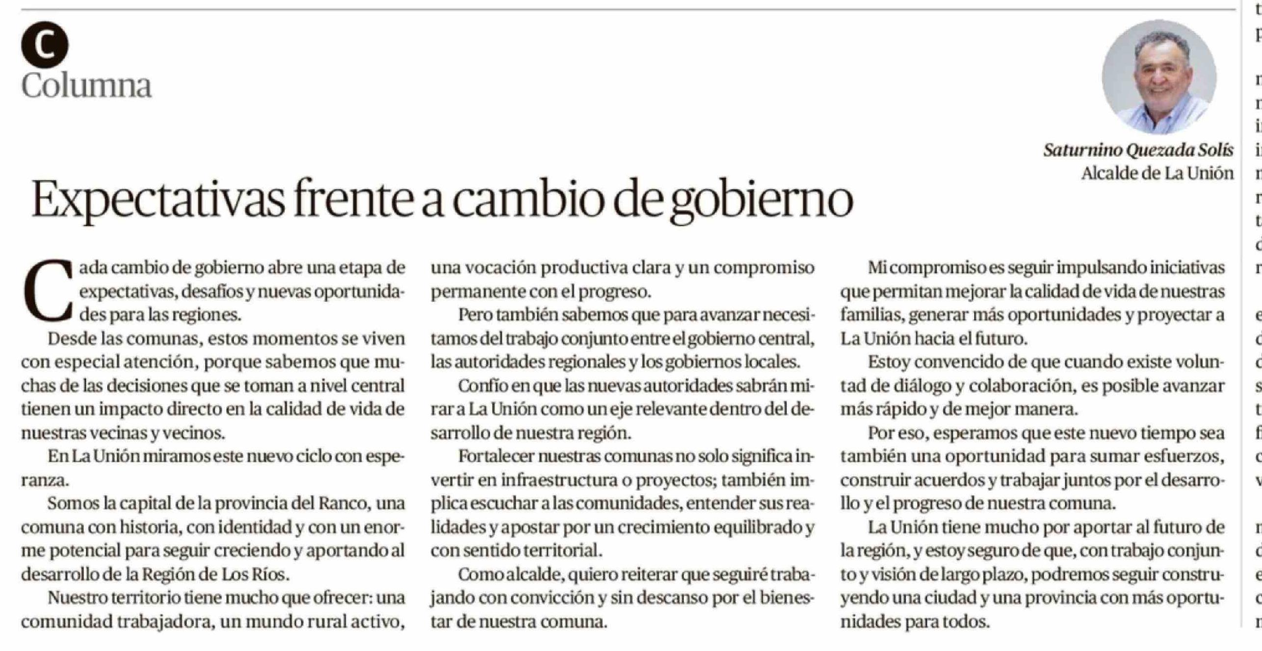 Columnas de Opinión: Expectativas frente a cambio de gobierno