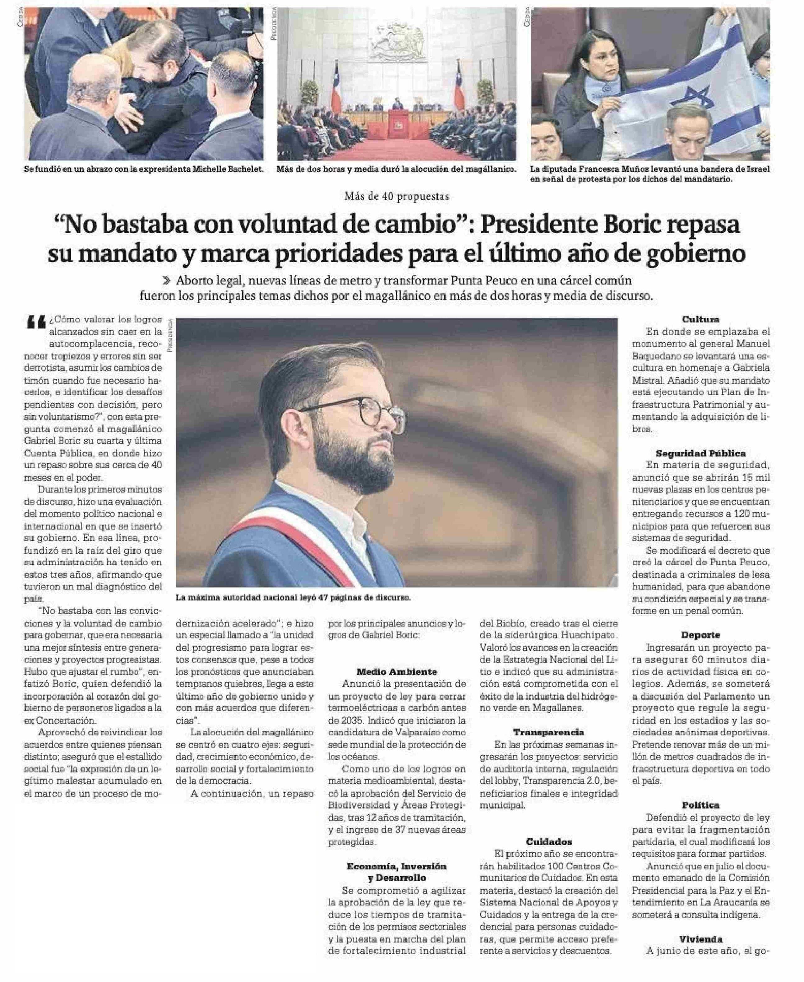 | Título: | “No bastaba con voluntad de cambio”: Presidente Boric repasa su mandato y marca prioridades para el último año de gobierno |