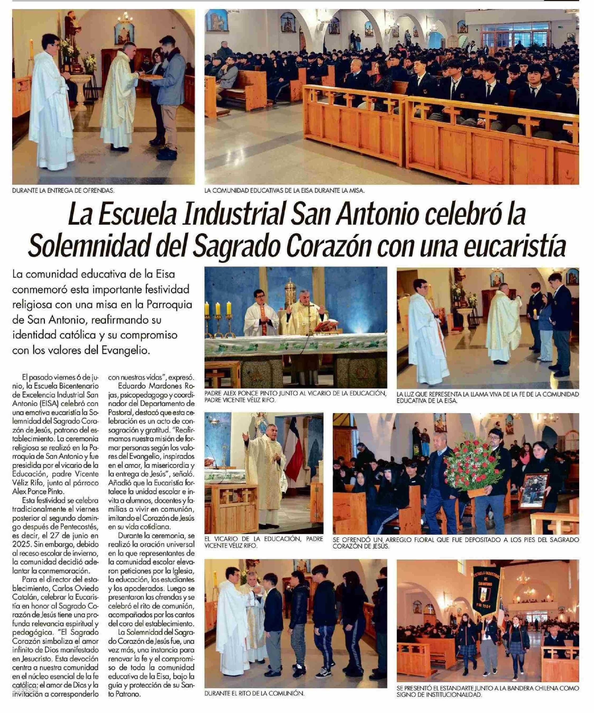 La Escuela Industrial San Antonio celebró la Solemnidad del Sagrado Corazón con una eucaristía