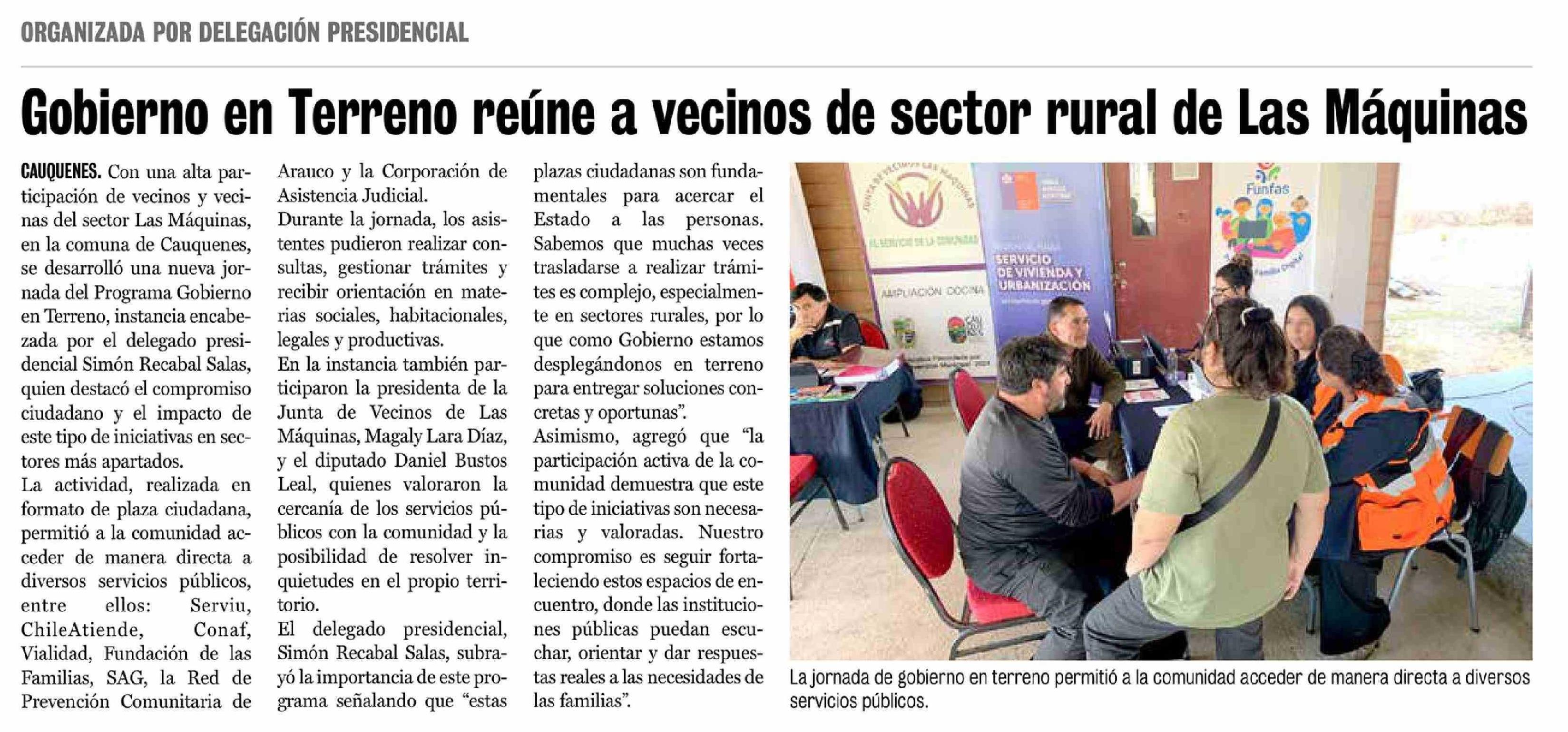 Gobierno en Terreno reúne a vecinos de sector rural de Las Máquinas