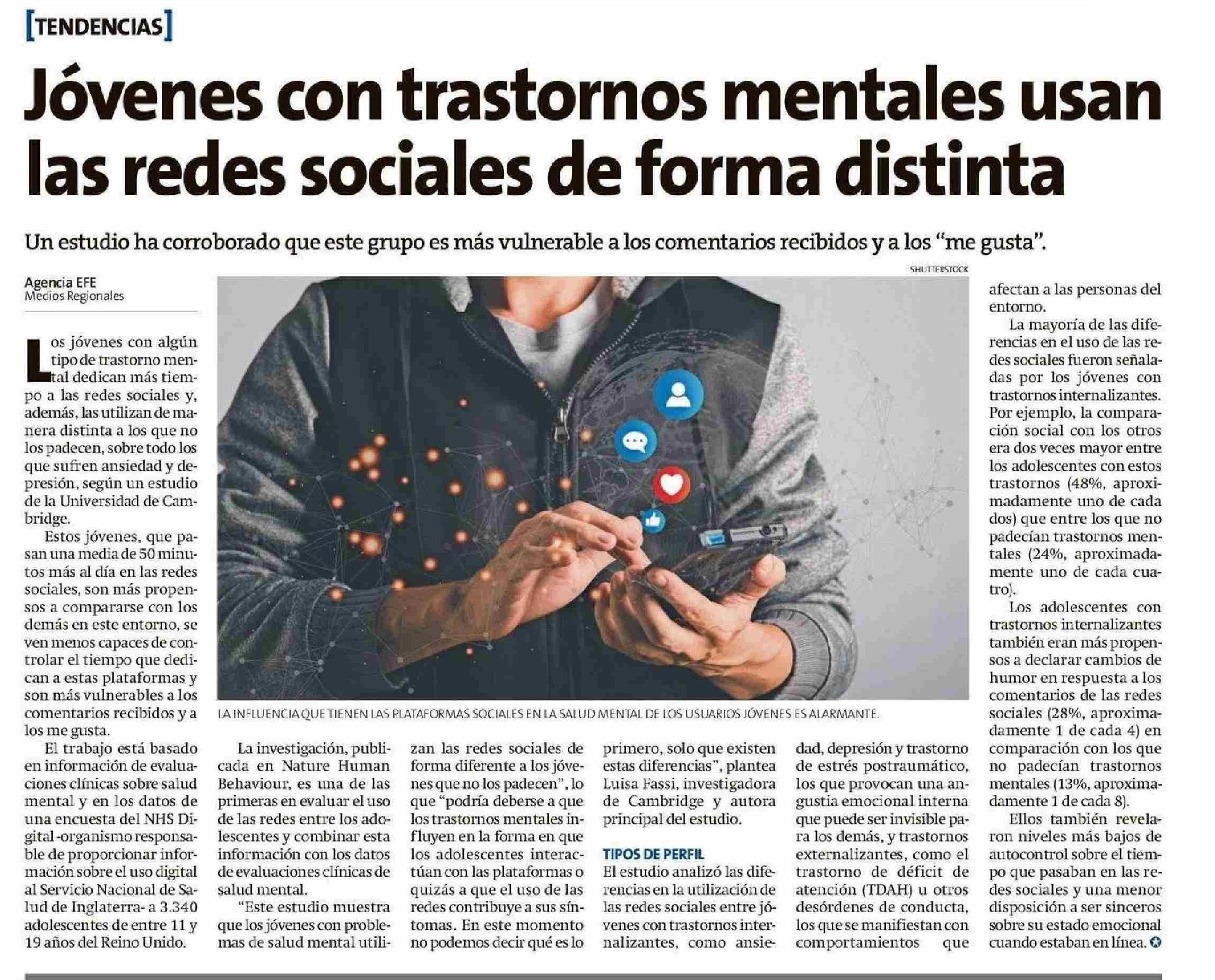 Jóvenes con trastornos mentales usan las redes sociales de forma distinta