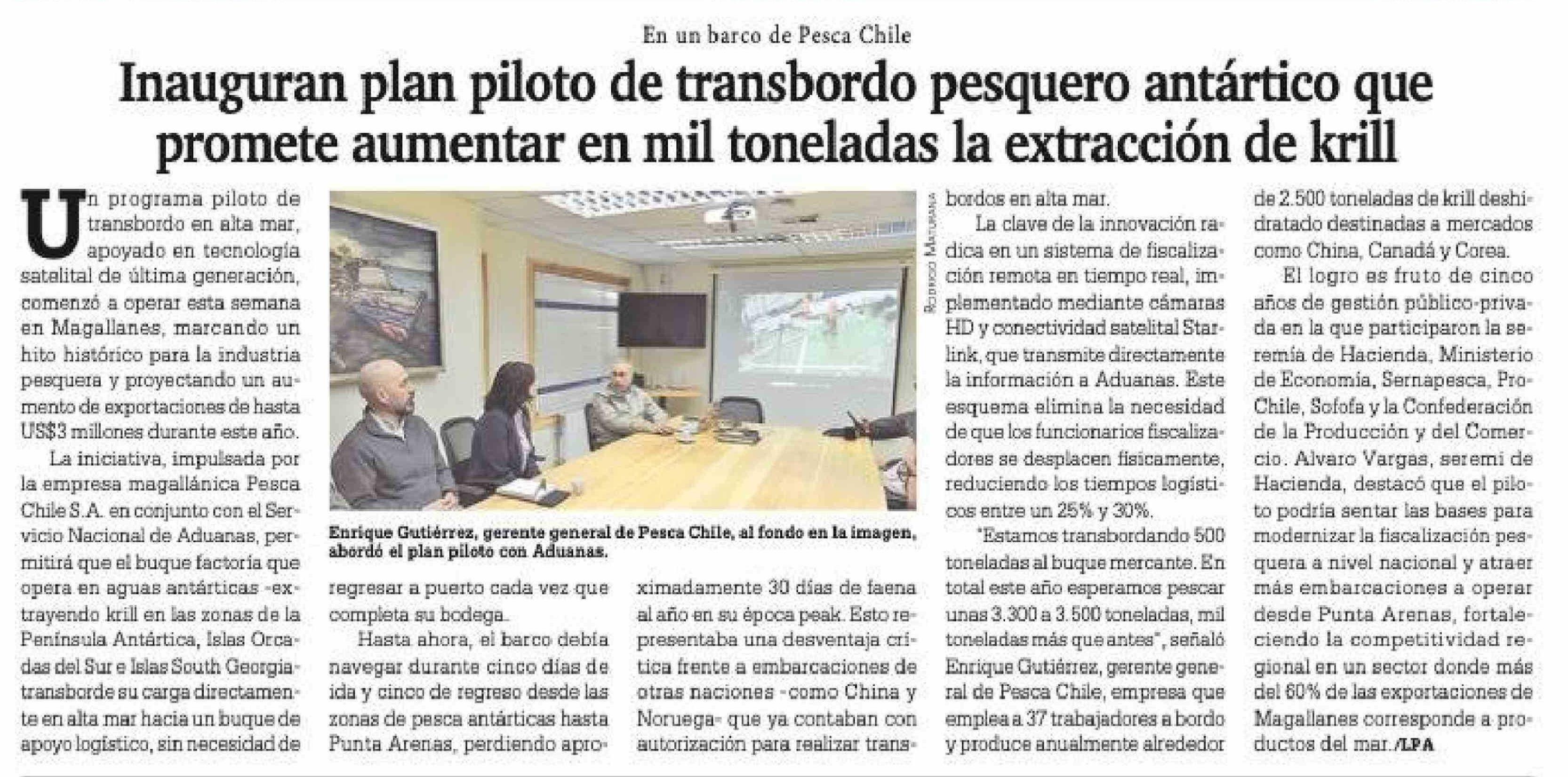 Inauguran plan piloto de transbordo pesquero antártico que promete aumentar en mil toneladas la extracción de krill