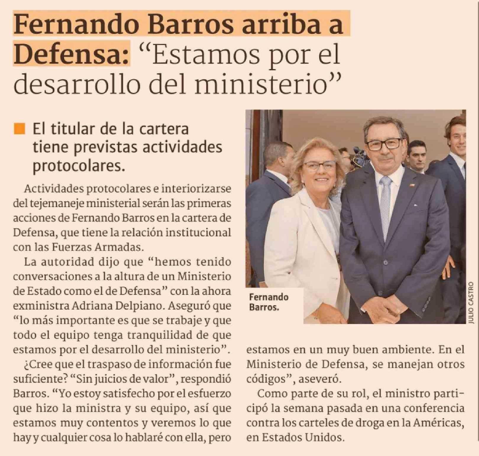 Fernando Barros arriba a Defensa: "Estamos por el desarrollo del ministerio"