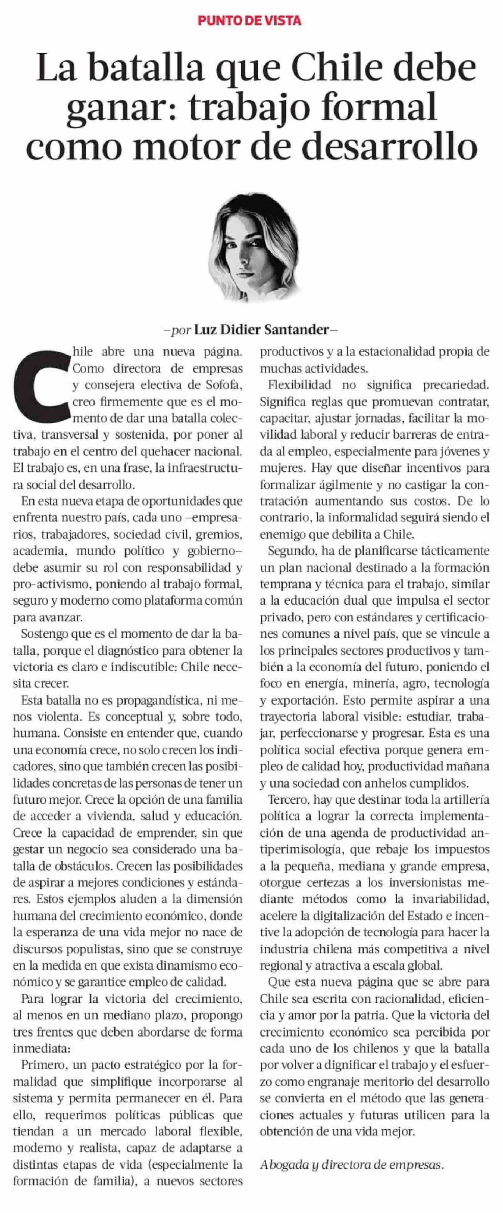 Columnas de Opinión: La batalla que Chile debe ganar: trabajo formal como motor de desarrollo