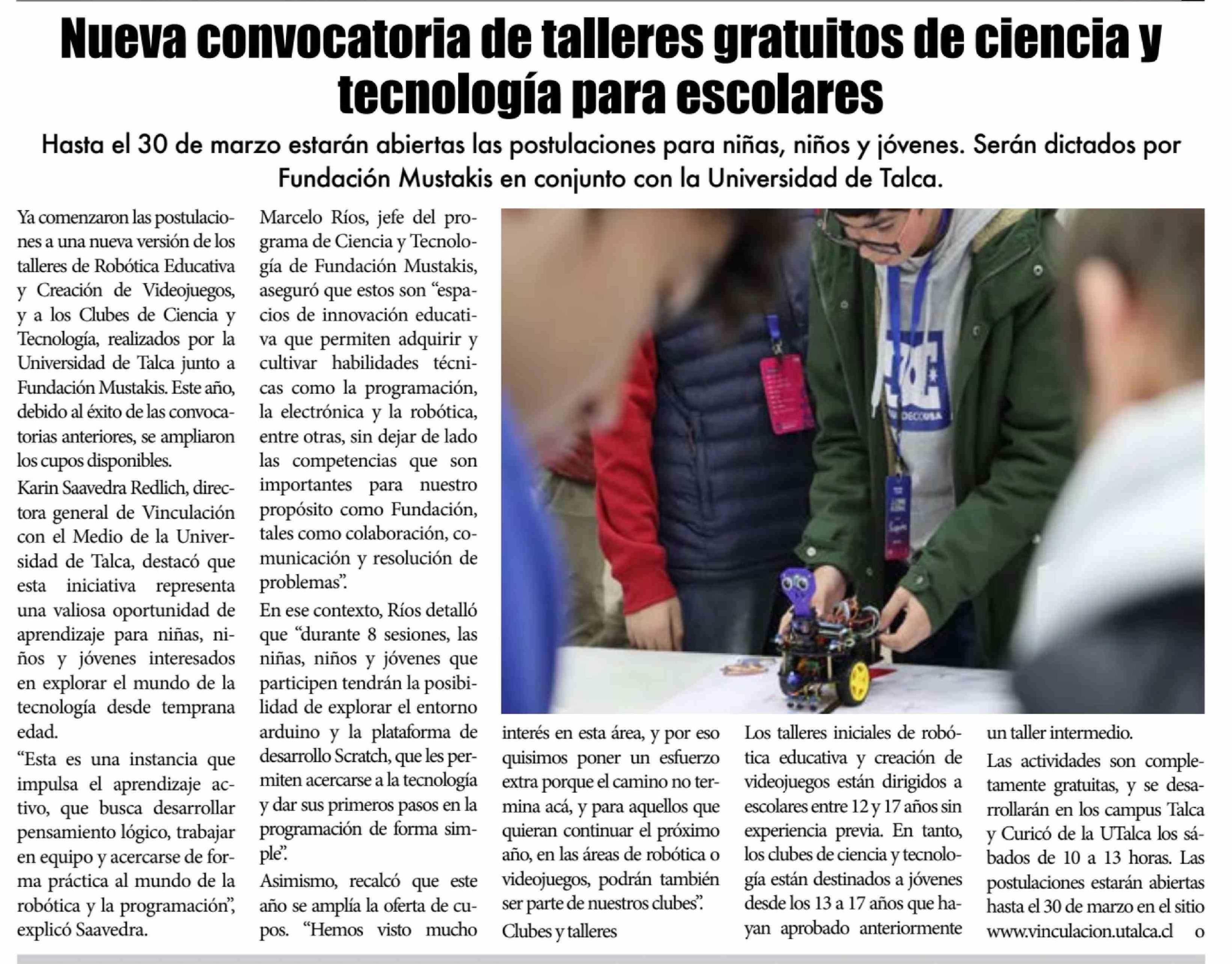 Nueva convocatoria de talleres gratuitos de ciencia y tecnología para escolares