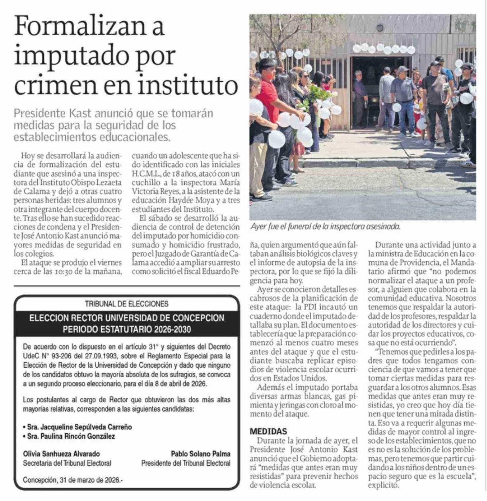 Formalizan a imputado por crimen en instituto