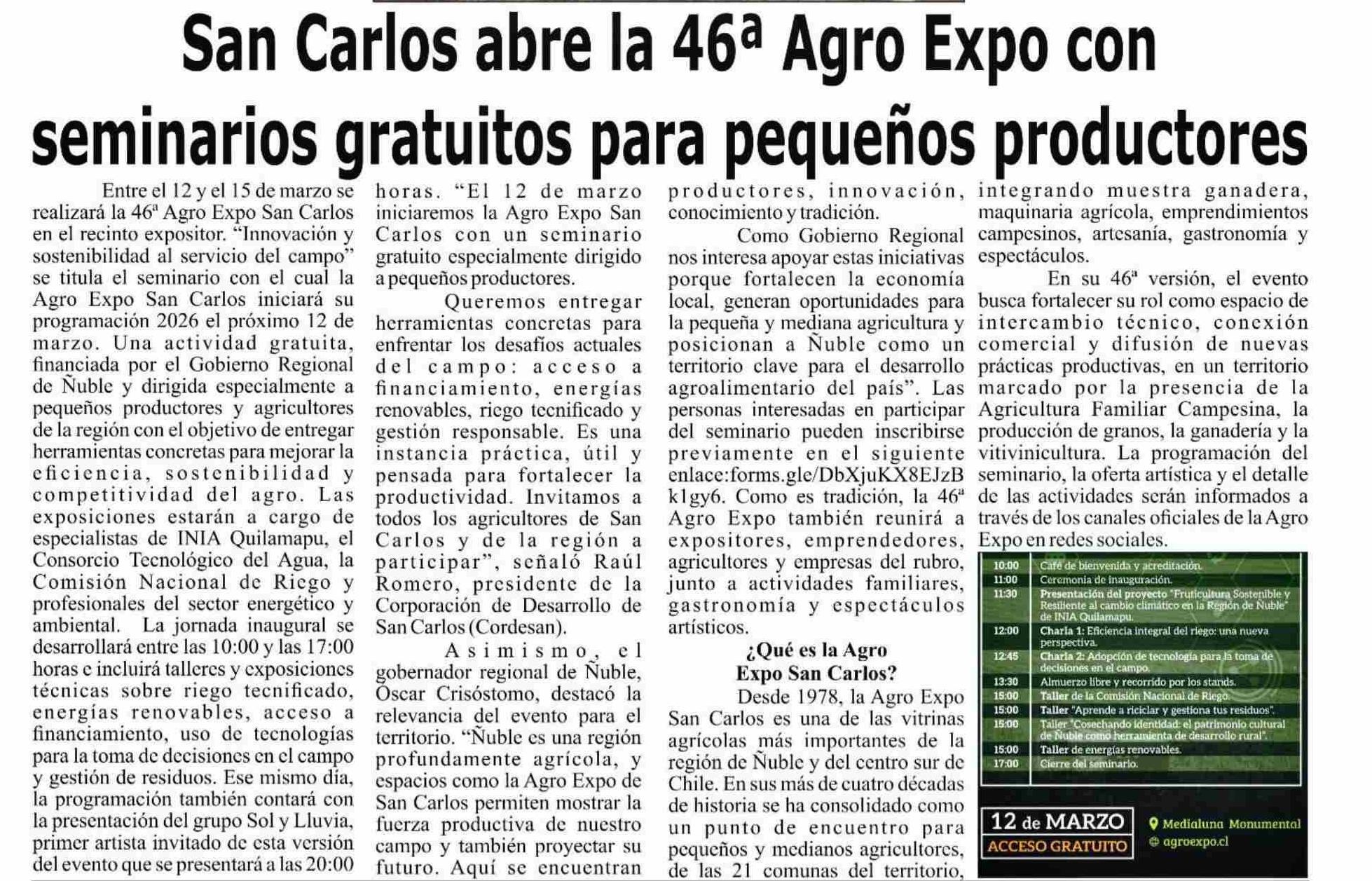 San Carlos abre la 46 Agro Expo con seminarios gratuitos para pequeños productores