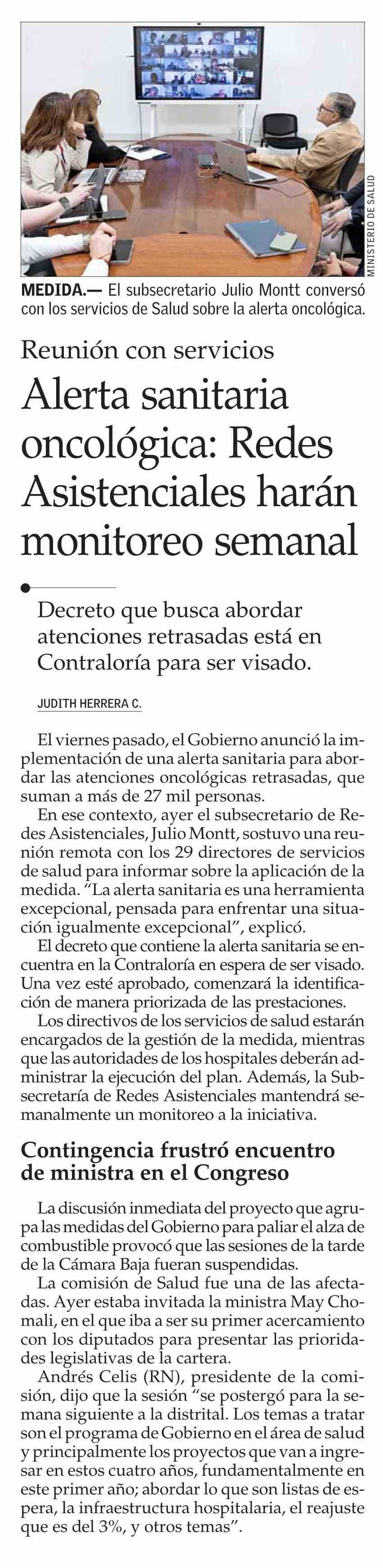 Alerta sanitaria oncológica: Redes Asistenciales harán monitoreo semanal