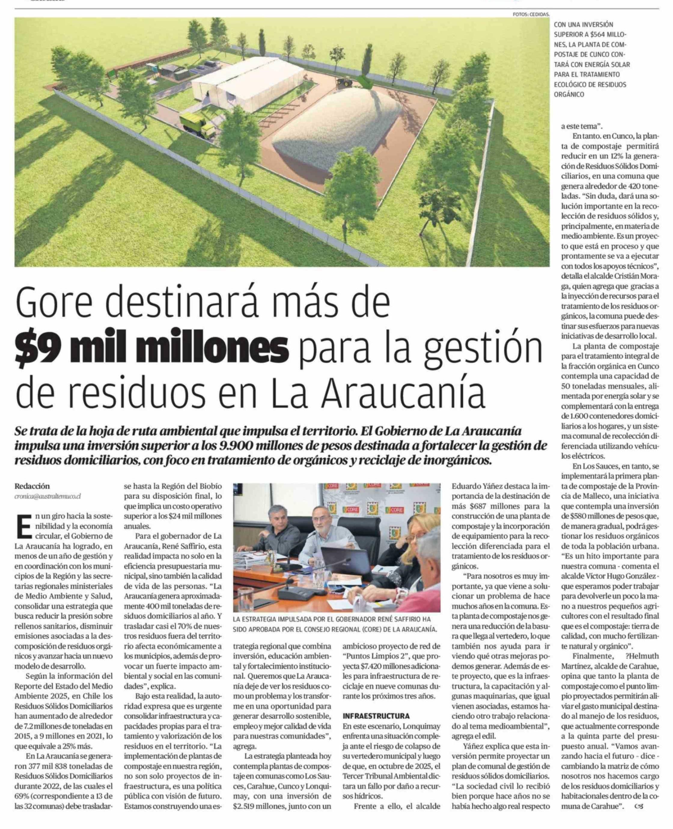 Gore destinará más de $9 mil millones para la gestión de residuos en La Araucanía
