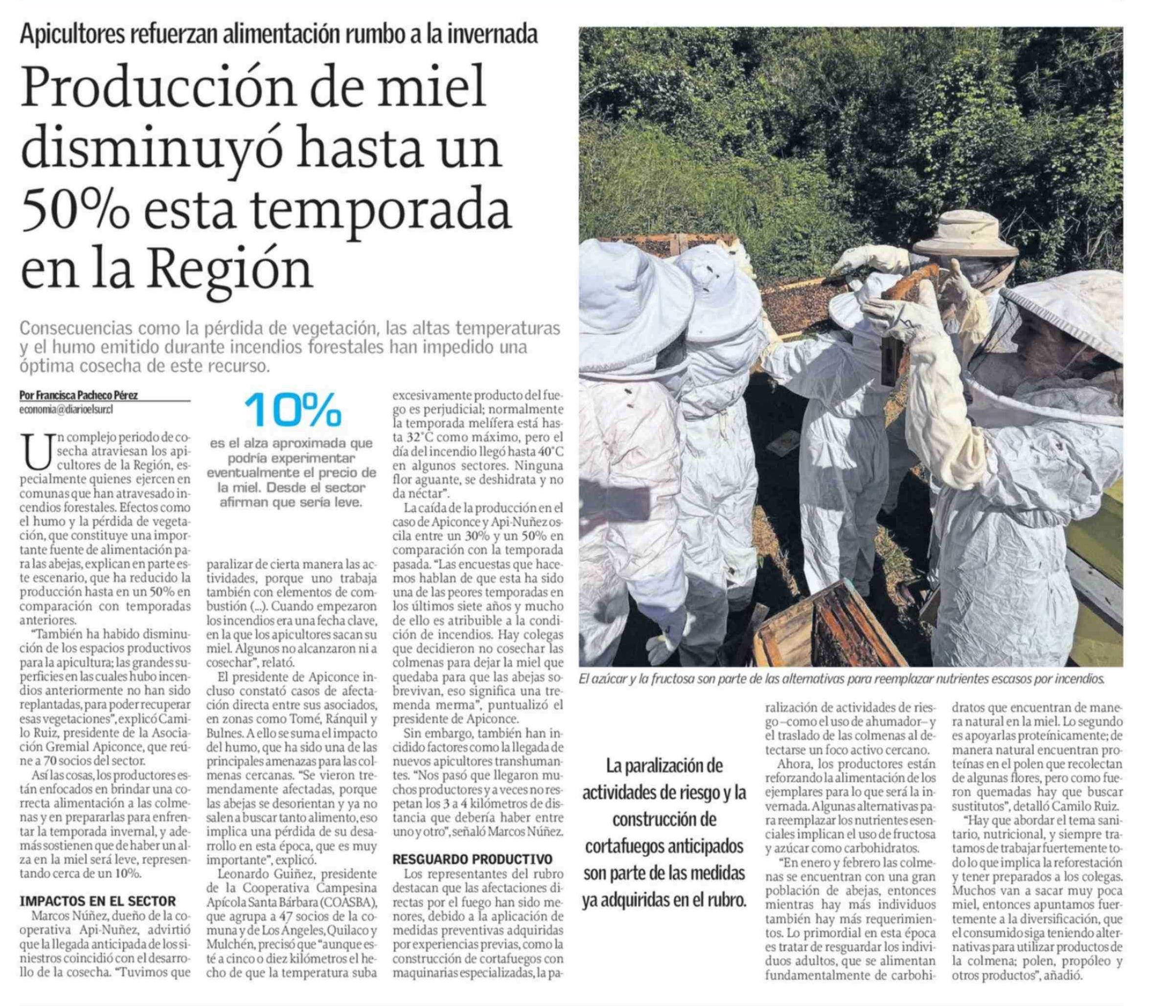 Producción de miel disminuyó hasta un 50% esta temporada en la Región