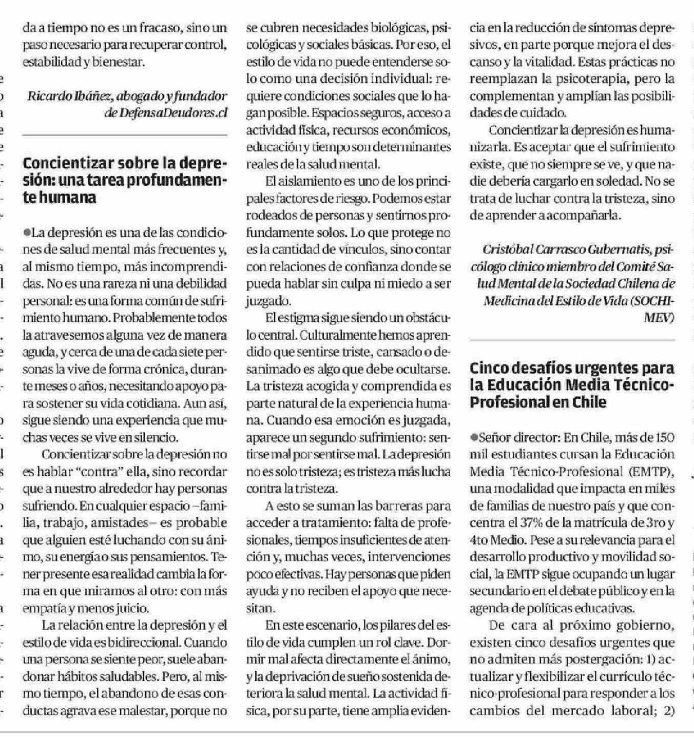 Cartas: Concientizar sobre la depresión: una tarea profundamente humana
