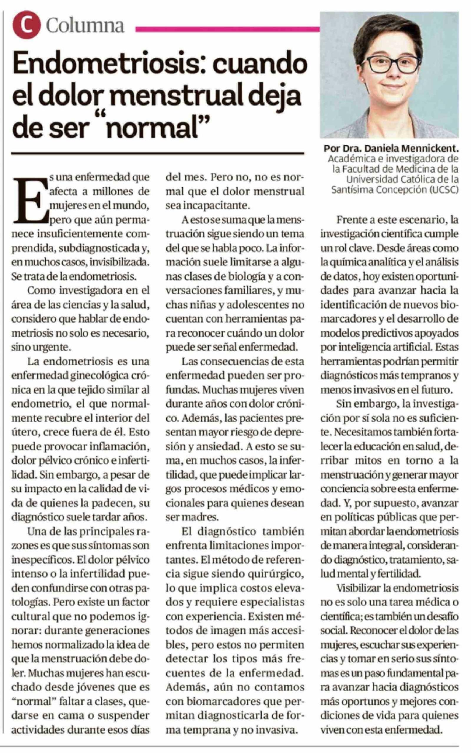Columnas de Opinión: Endometriosis: cuando el dolor menstrual deja de ser "normal"