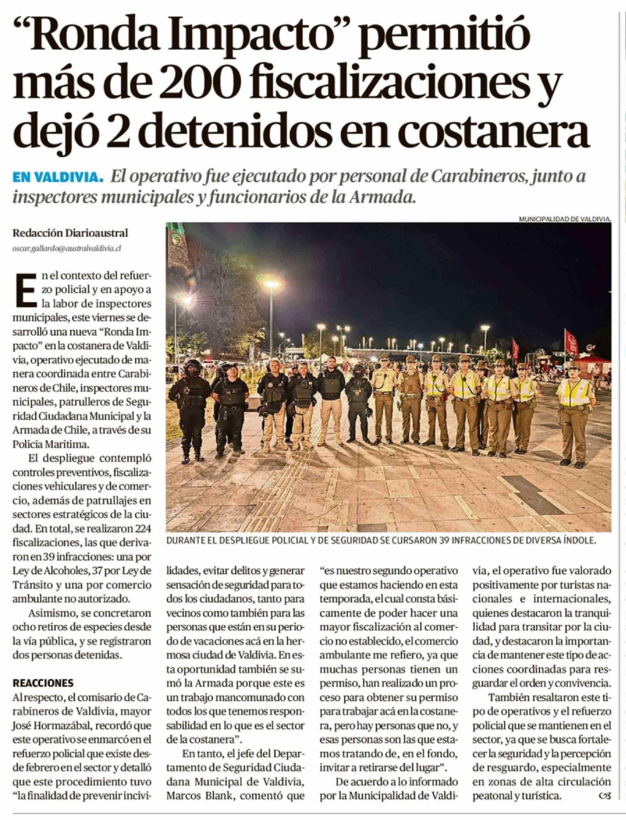 "Ronda Impacto" permitió más de 200 fiscalizaciones y dejó 2 detenidos en costanera